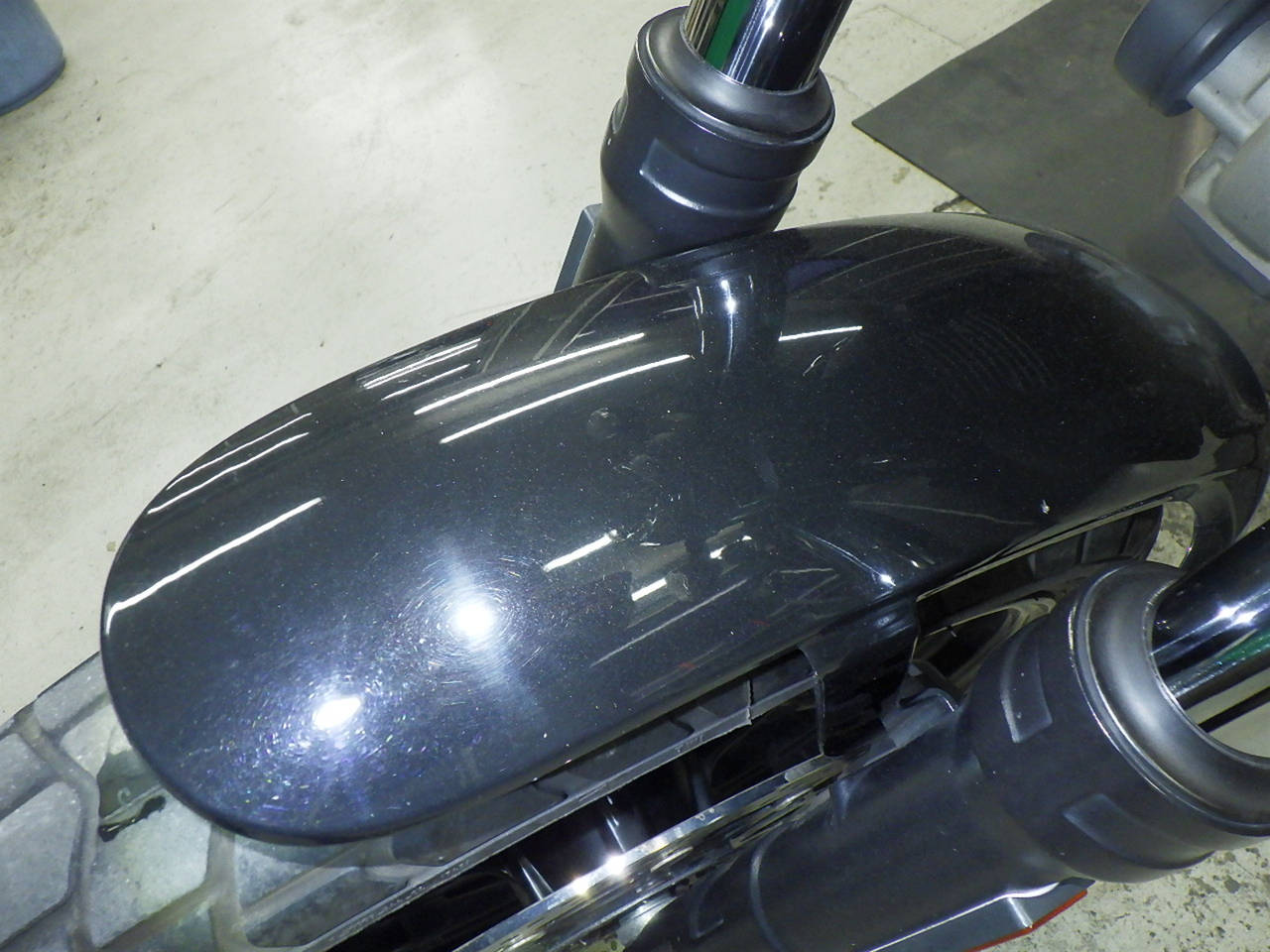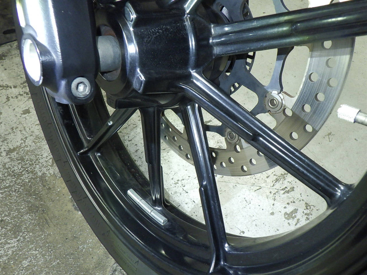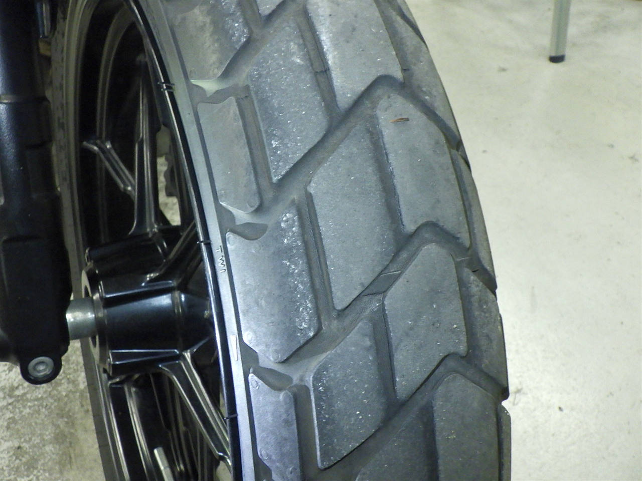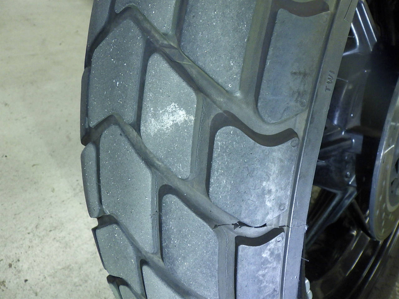 Передняя покрышка: Снижение давления в шине, Трещина требует замены.