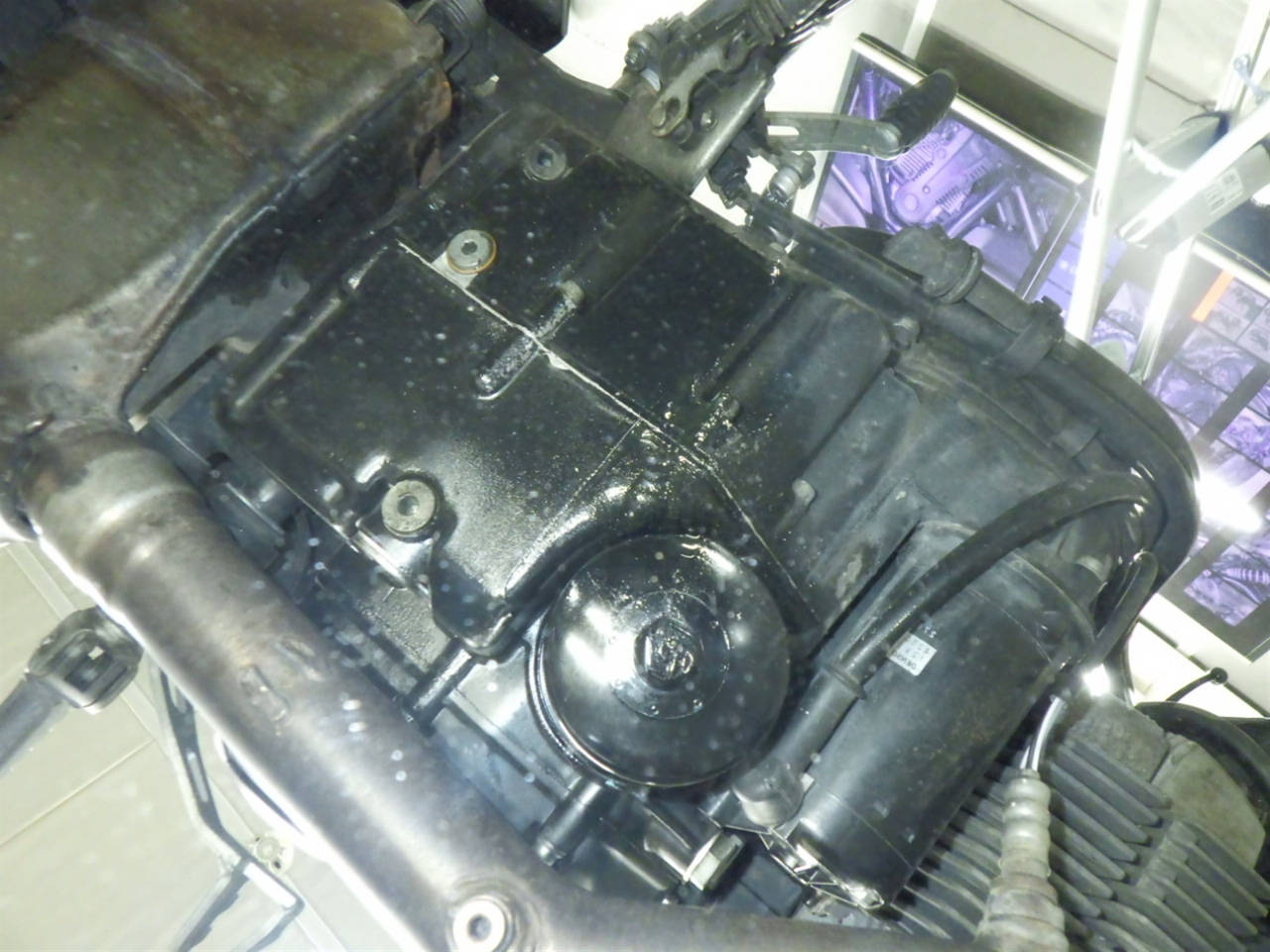 Крышка картера: Крышка ржавая, краска облупилась.