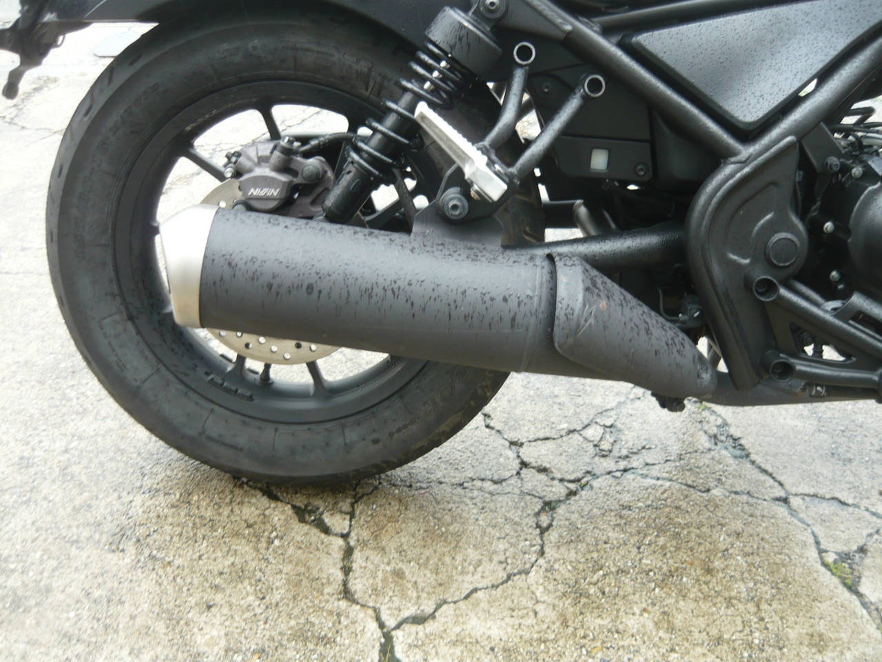Правое покрыло глушителя, царапина <маленькая>