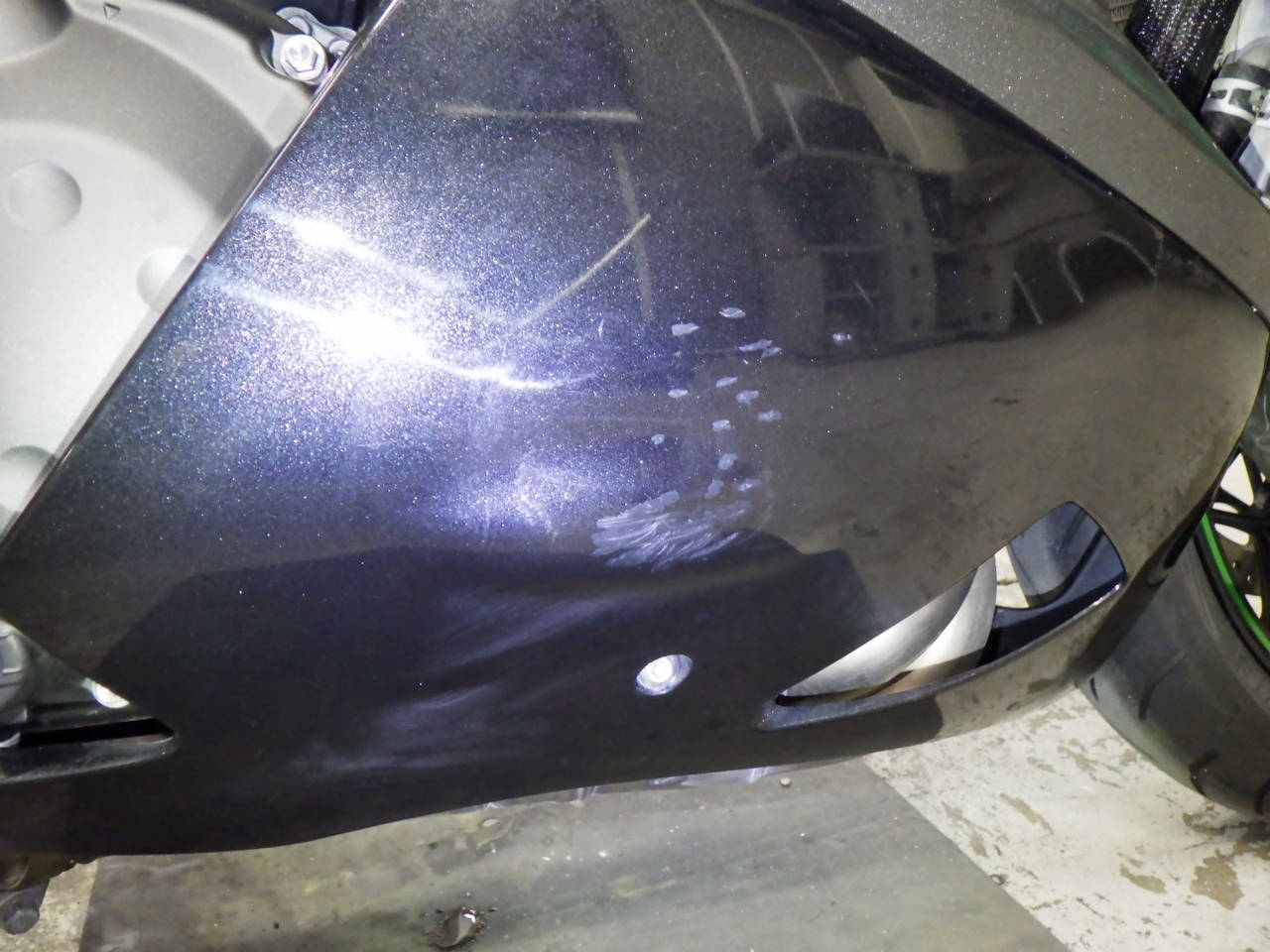 Передний пластик: Верхний недочет Уровень 3, Частичная покраска, Потёртость