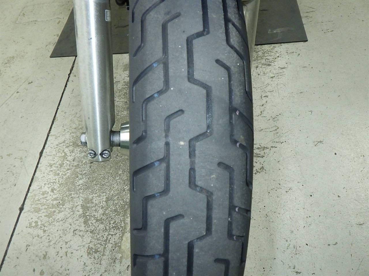 Передняя покрышка: Снижение давления в шине, Трещина требует замены.
