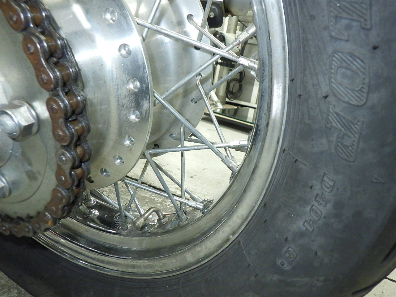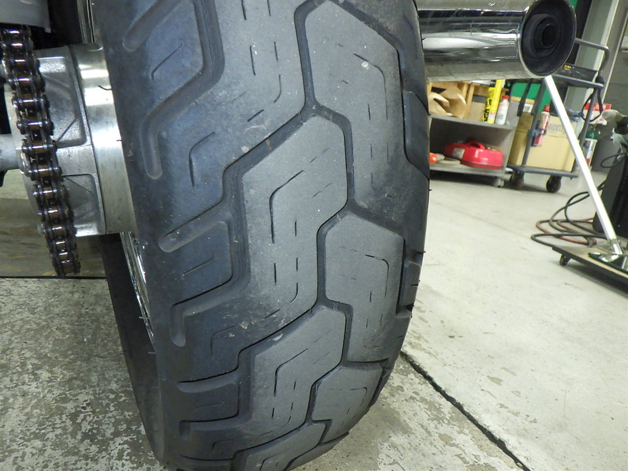 Задняя покрышка: Снижение давления в шине, Трещина требует замены.