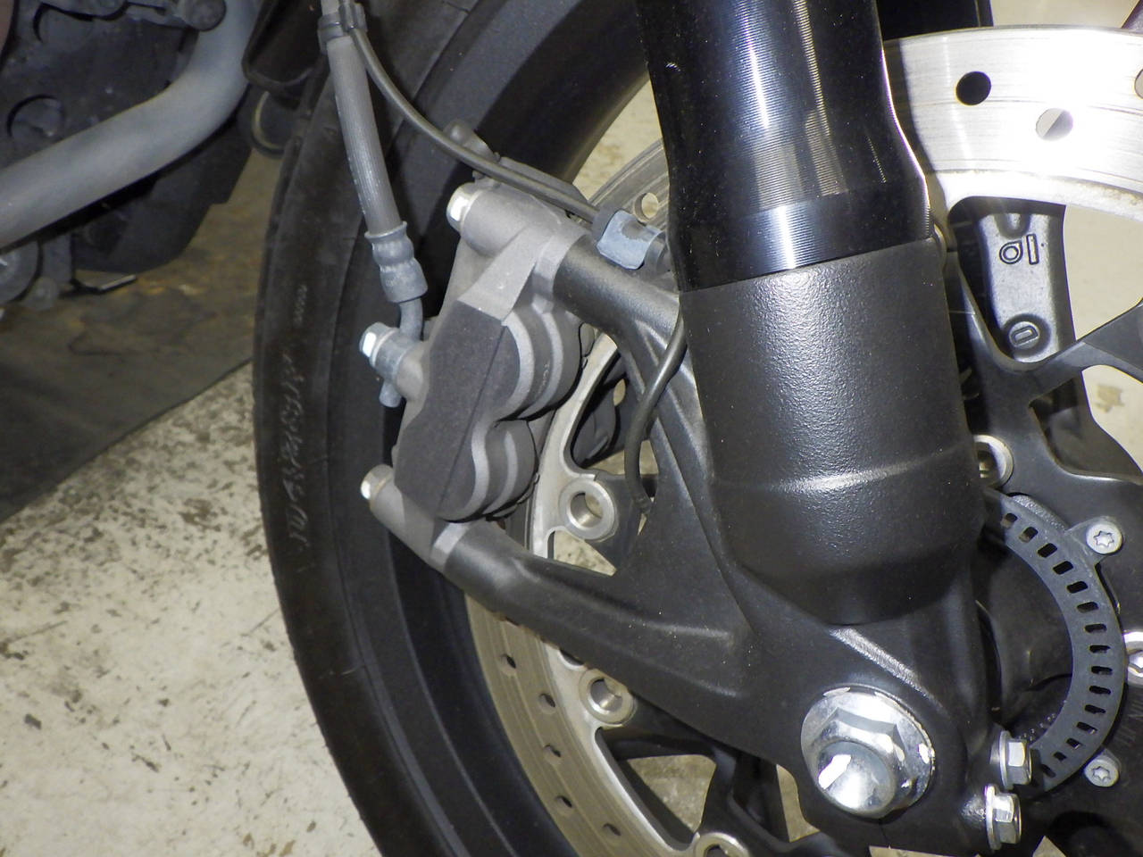 Передняя покрышка: Снижение давления в шине, Трещина требует замены.