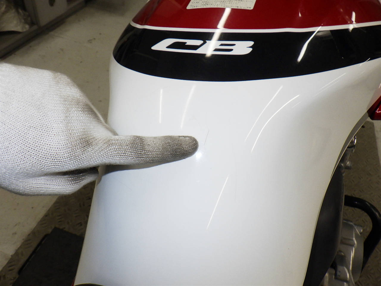 Боковой пластик: Боковой недочет, трещина в краске. Уровень 3
