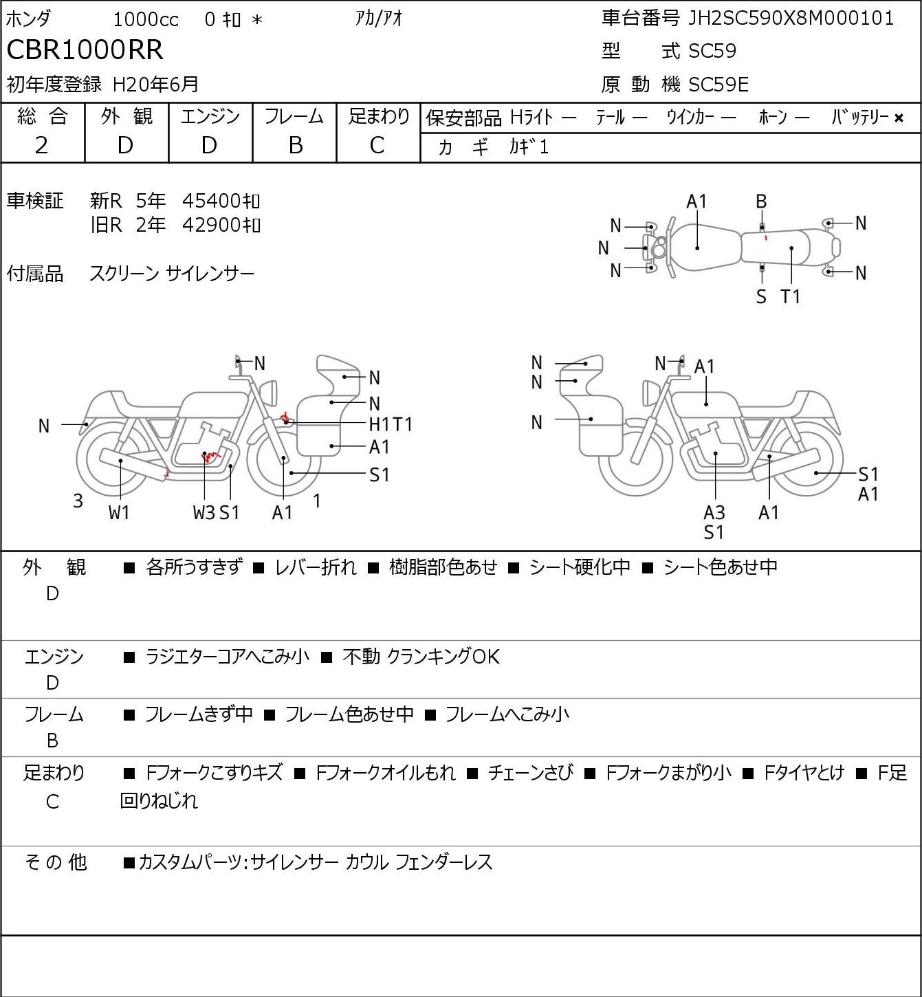 Номер рамы: JH2SC590X8M000101