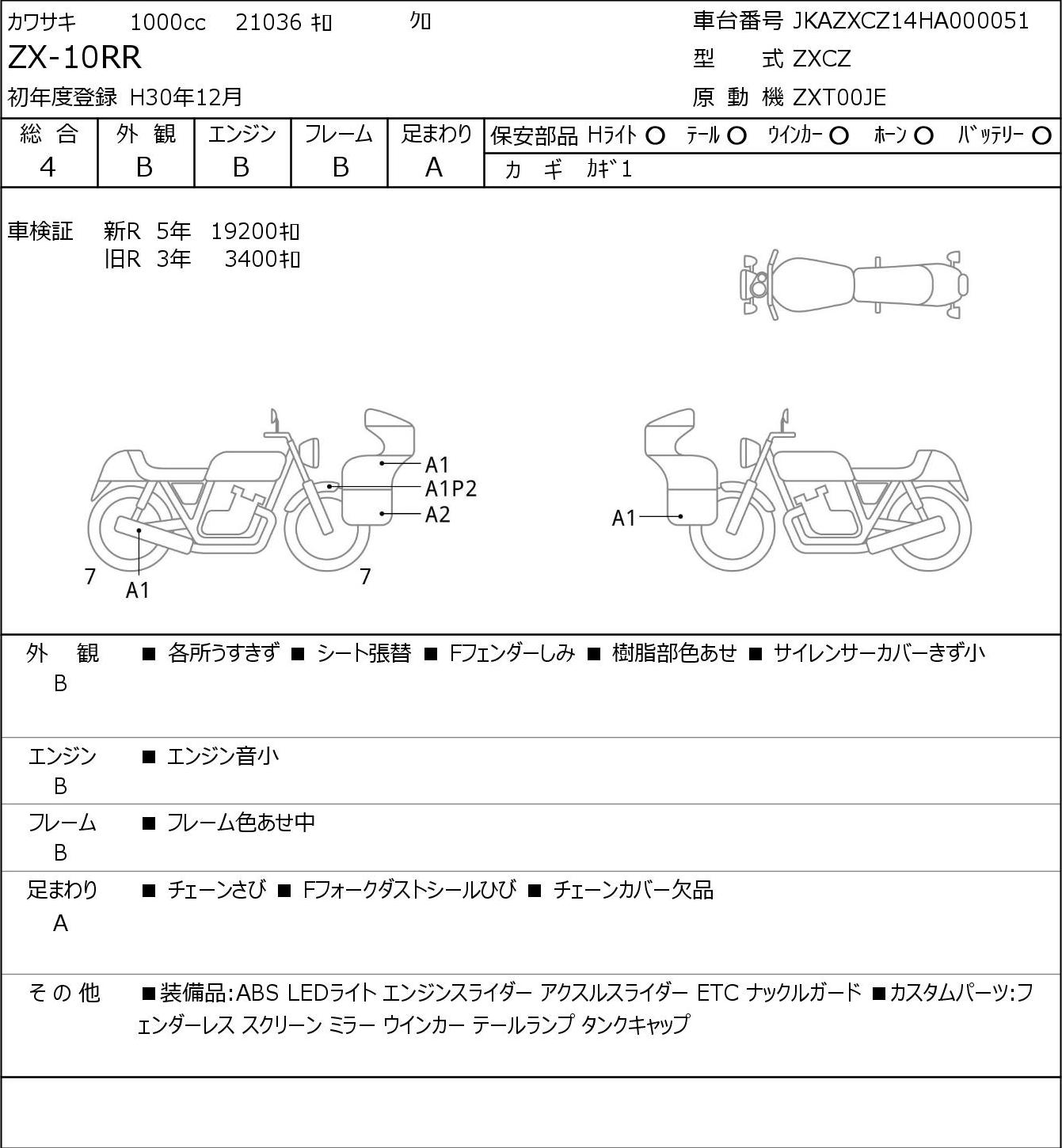 Номер рамы: JKAZXCZ14HA000051