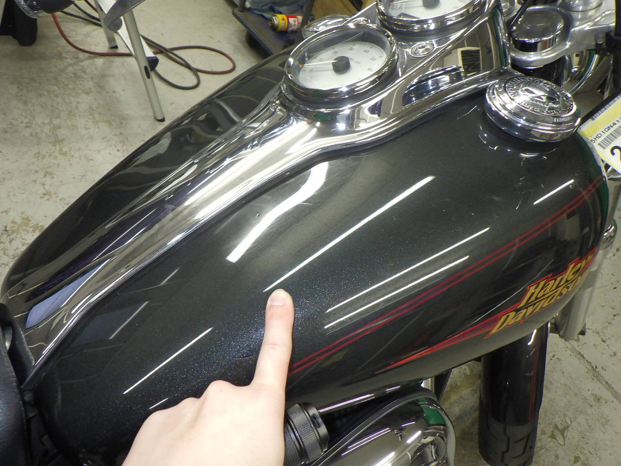 Бензобак: Недочет бака, Вмятина, Частичная потеря покраски, Правильно, Крышка Неоригинальный продукт