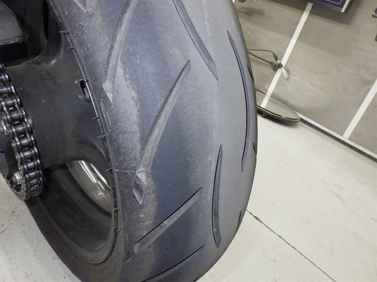 Передняя покрышка: Снижение давления в шине, Трещина