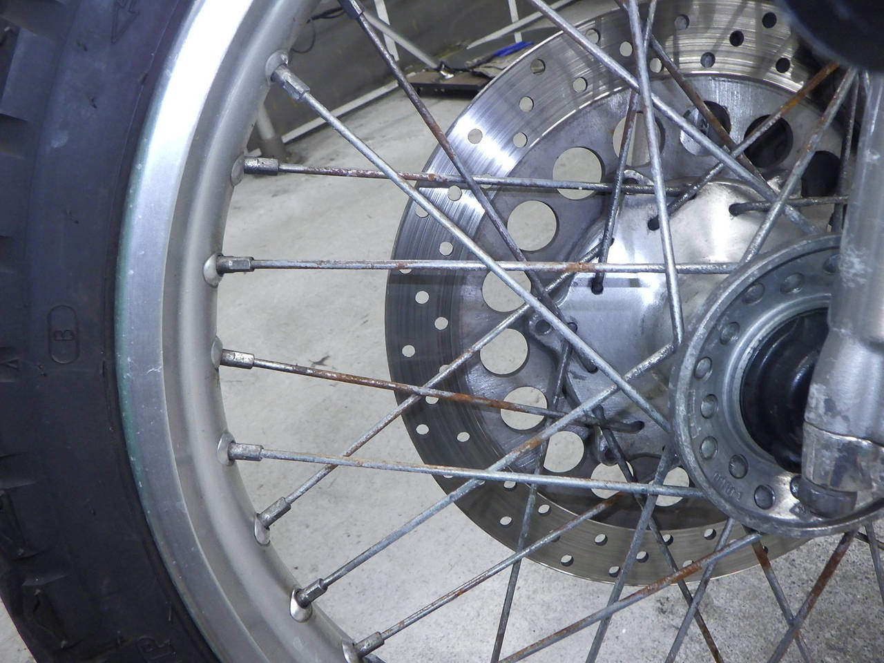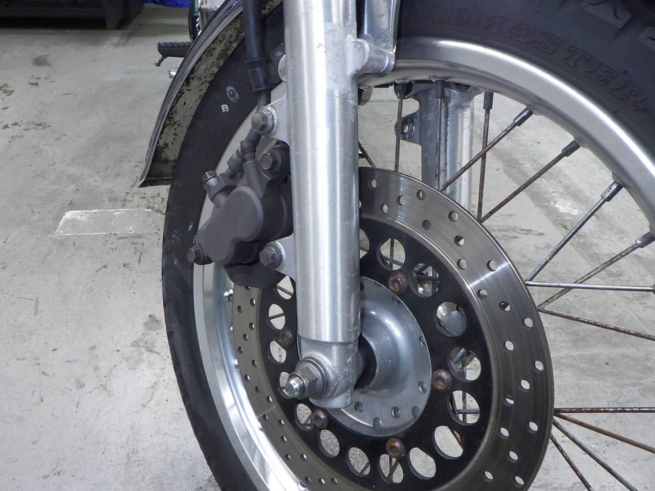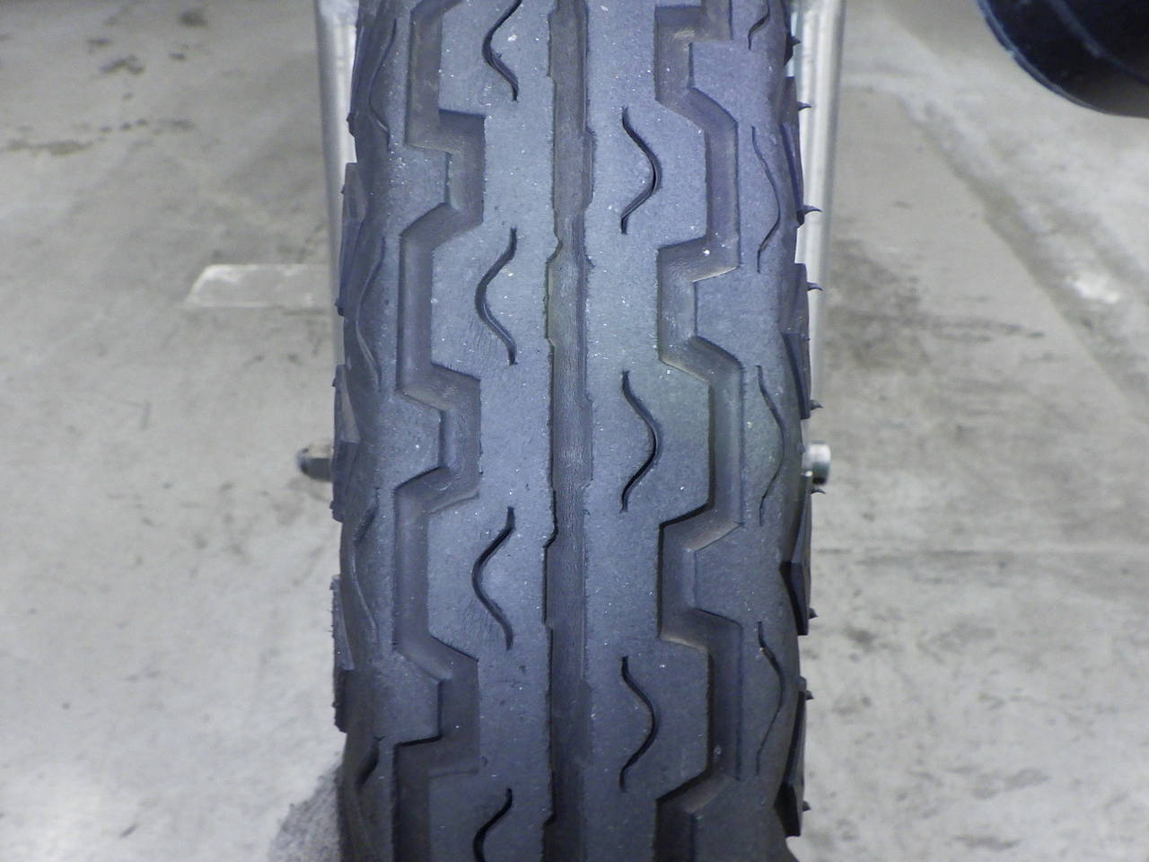Передняя покрышка: Трещина на шине, требуется замена.