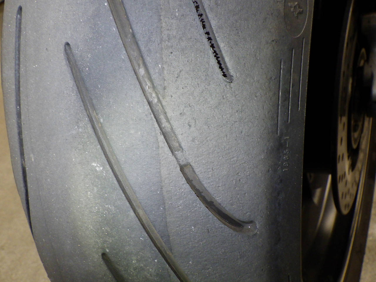 Задняя покрышка: Требуется замена изношенного шины.