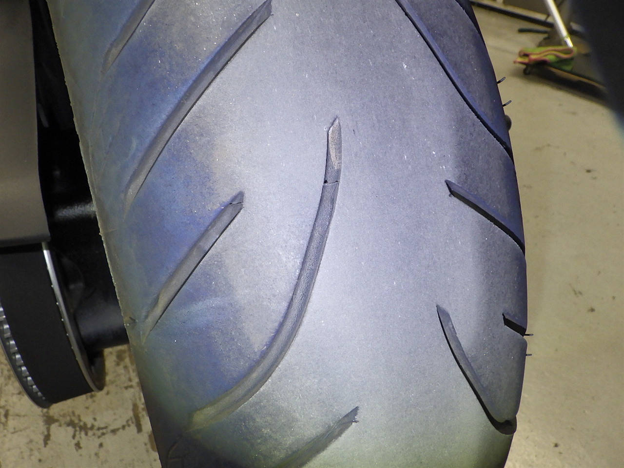 Передняя покрышка: Требуется замена изношенного шины.