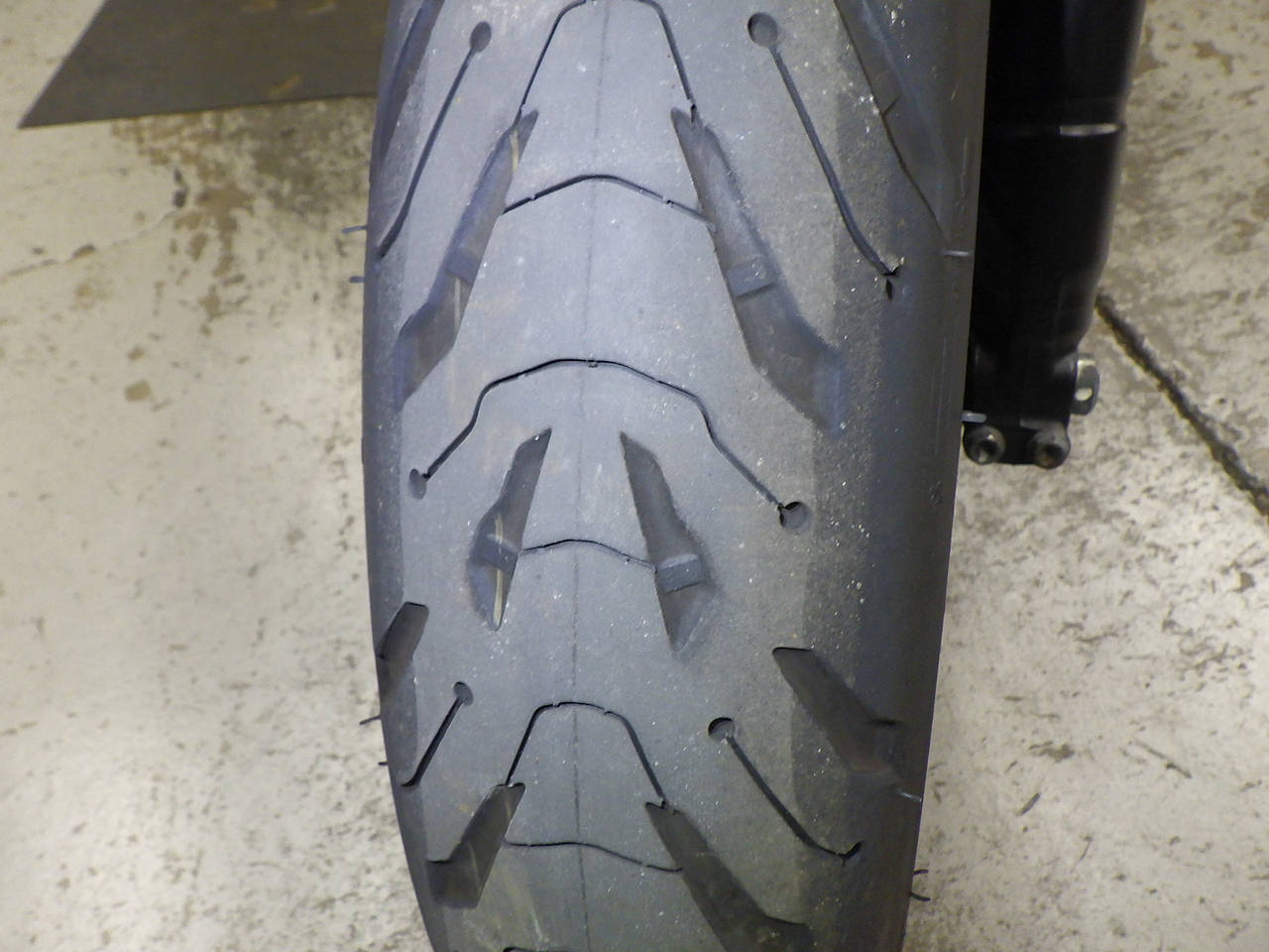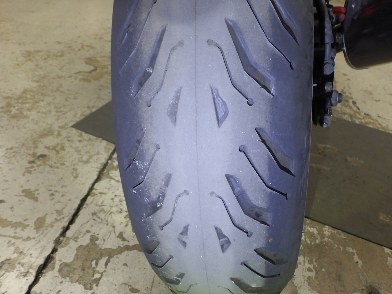 Передняя покрышка: Снижение давления в шине, Трещина требует замены.