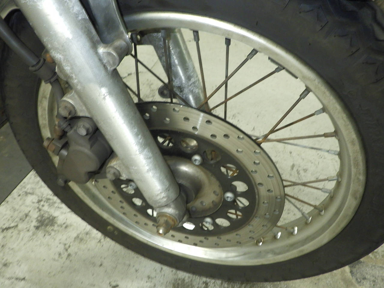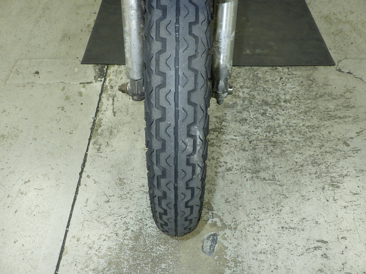 Передняя покрышка: Снижение давления в шине, Трещина требует замены.