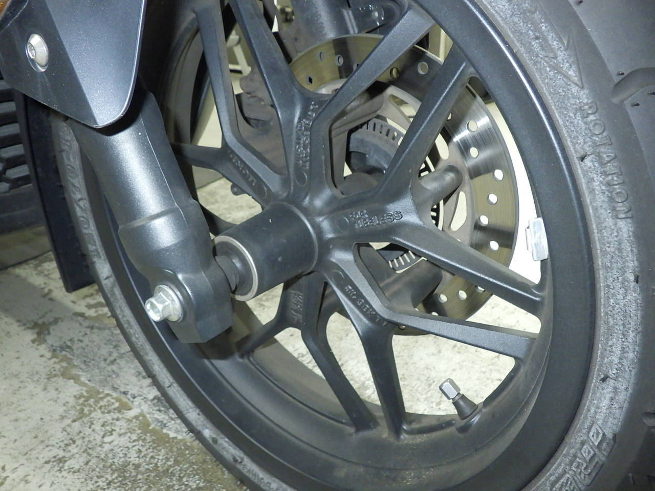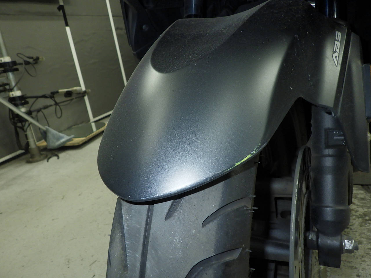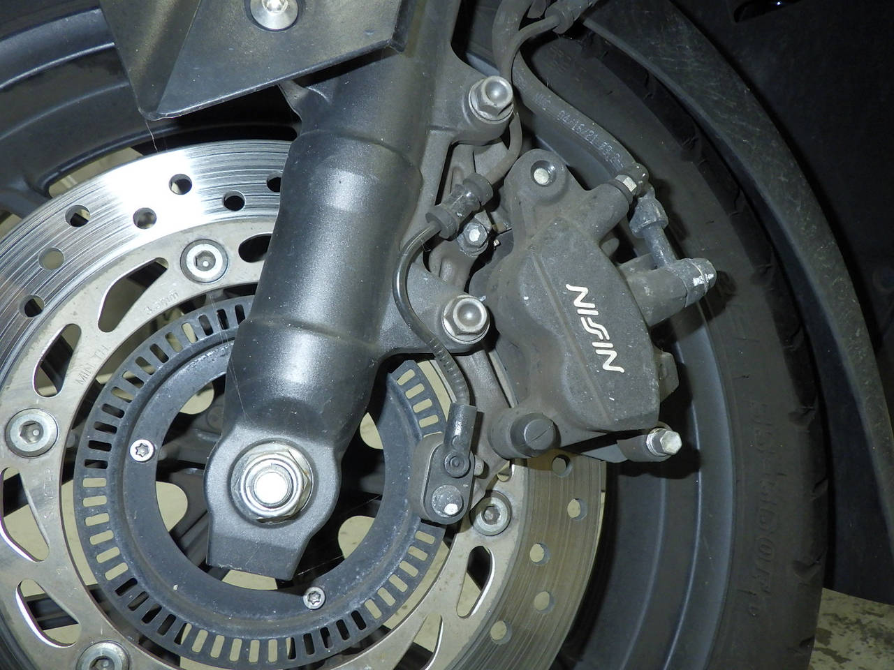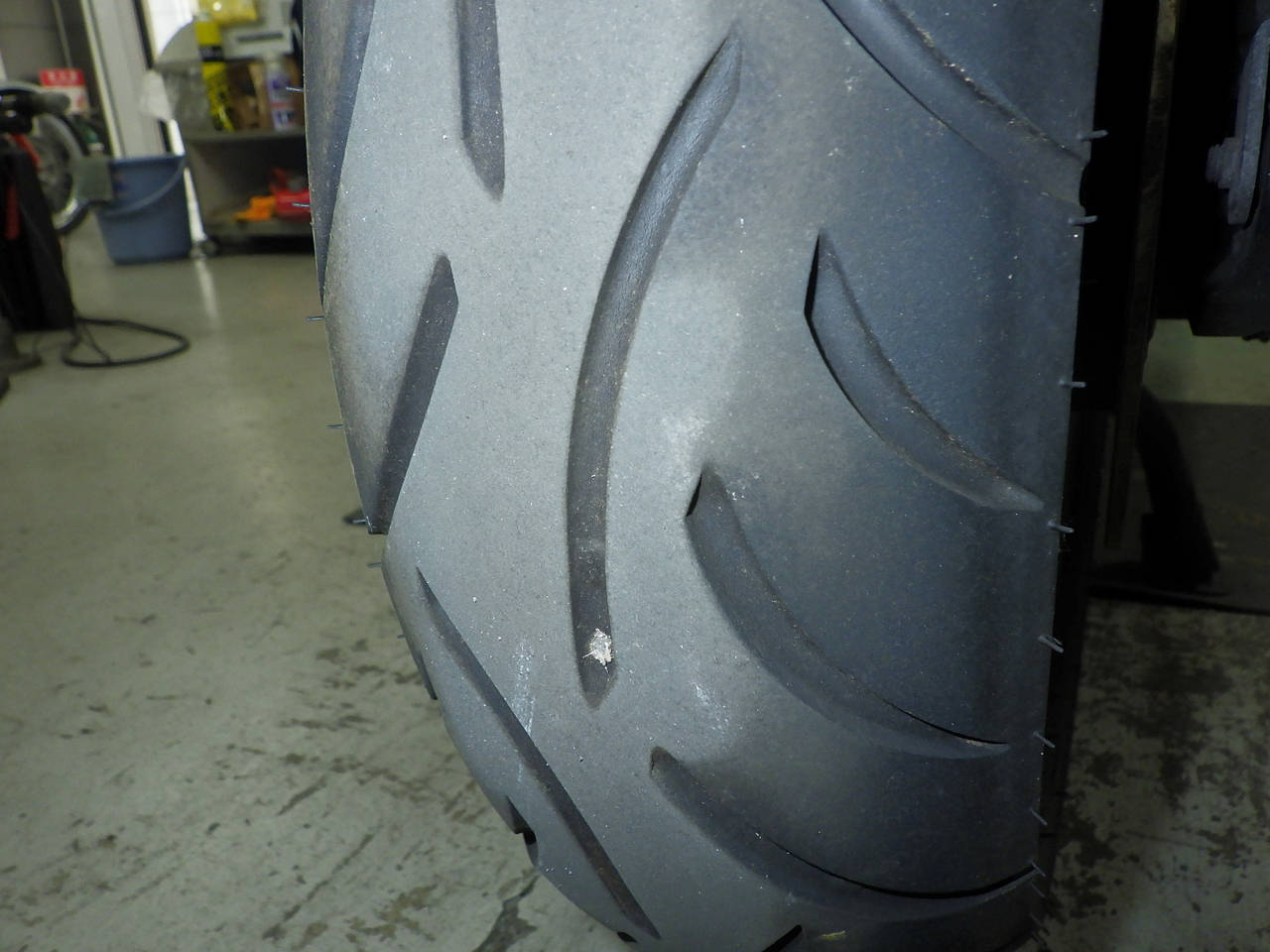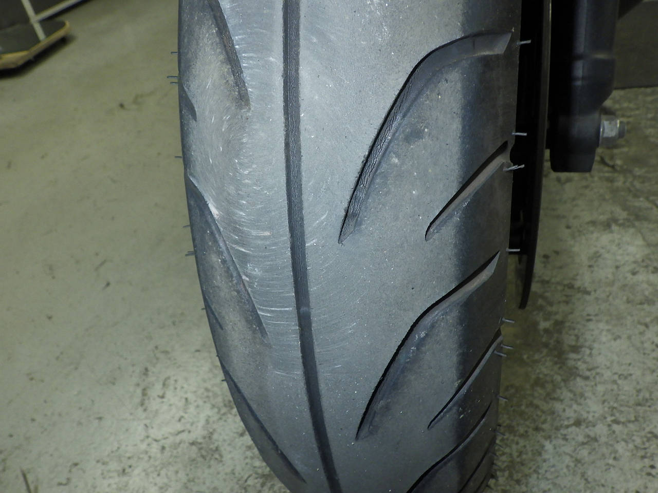 Передняя покрышка: Трещина на шине, требуется замена.