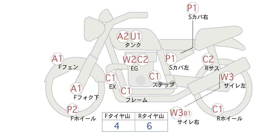 Следы краски на переднем колесе с разводами
