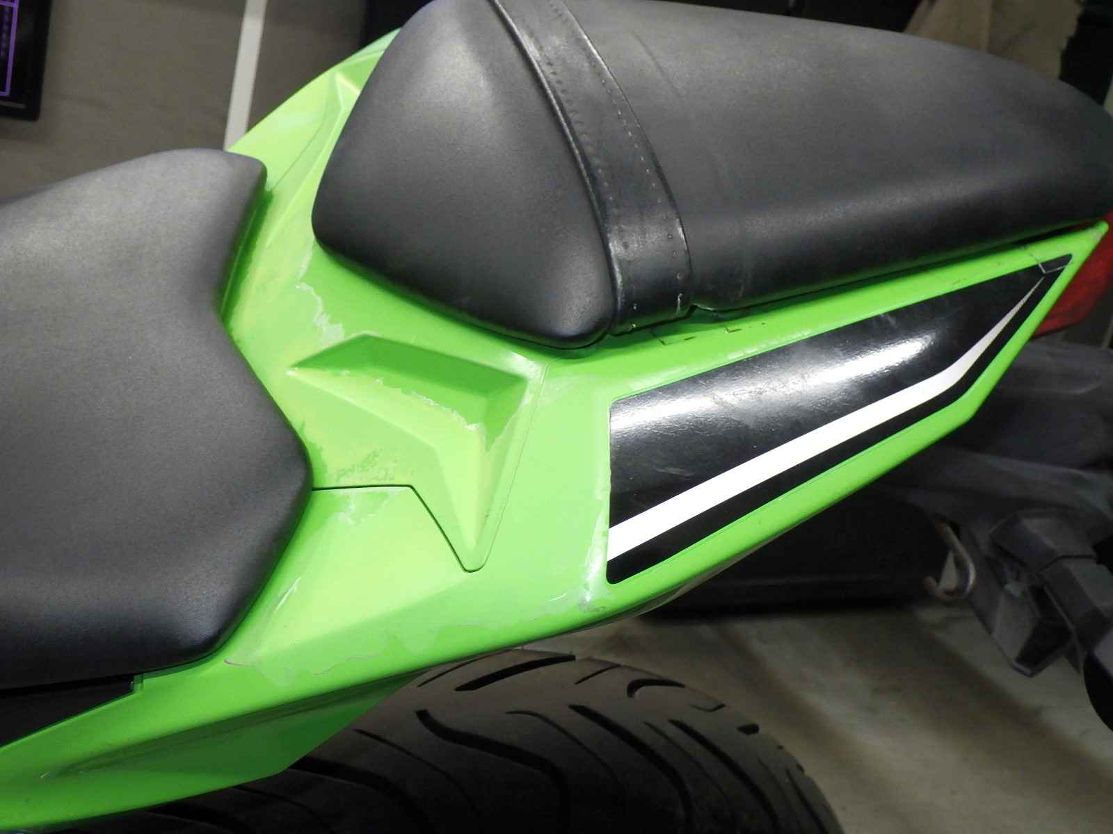 Переднее крыло: Краска на переднем крыле мотоцикла стерлась, есть недочеты.