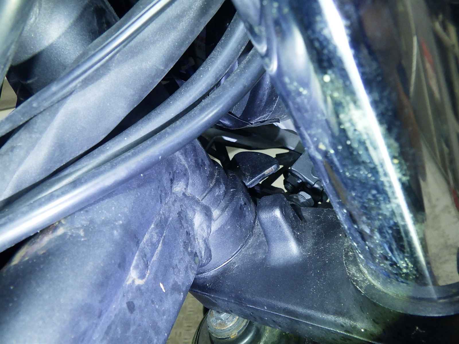 Передний пластик: Верхняя часть облезла, краска стерлась, Внутренний дефицит, Остается изогнутым