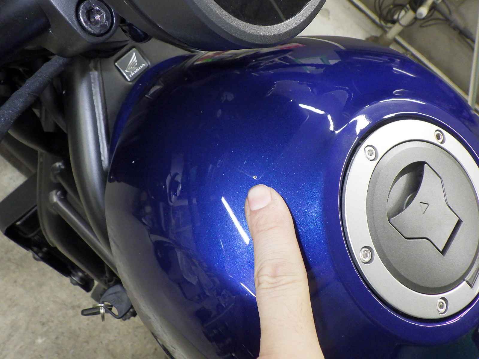 Бензобак: Повреждение бака, покраска с баллончика