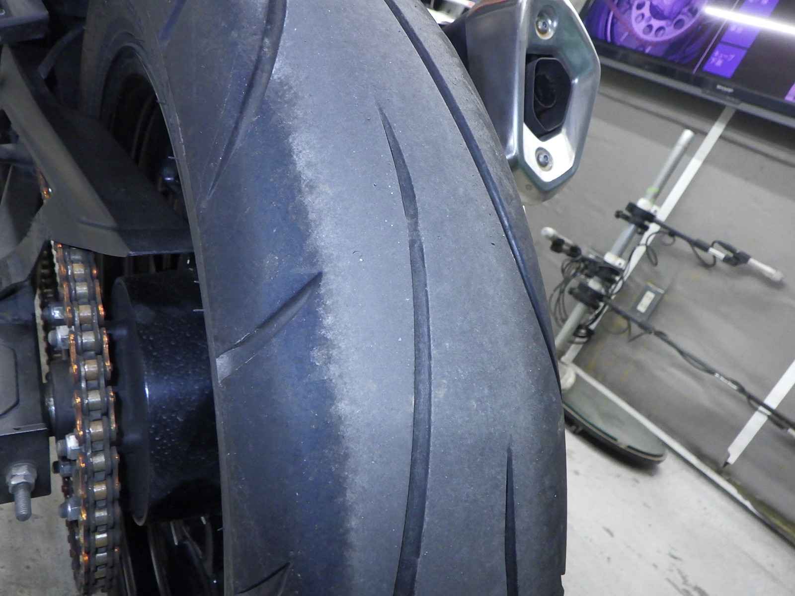 Задняя покрышка: Снижение давления в шине, Трещина требует замены.
