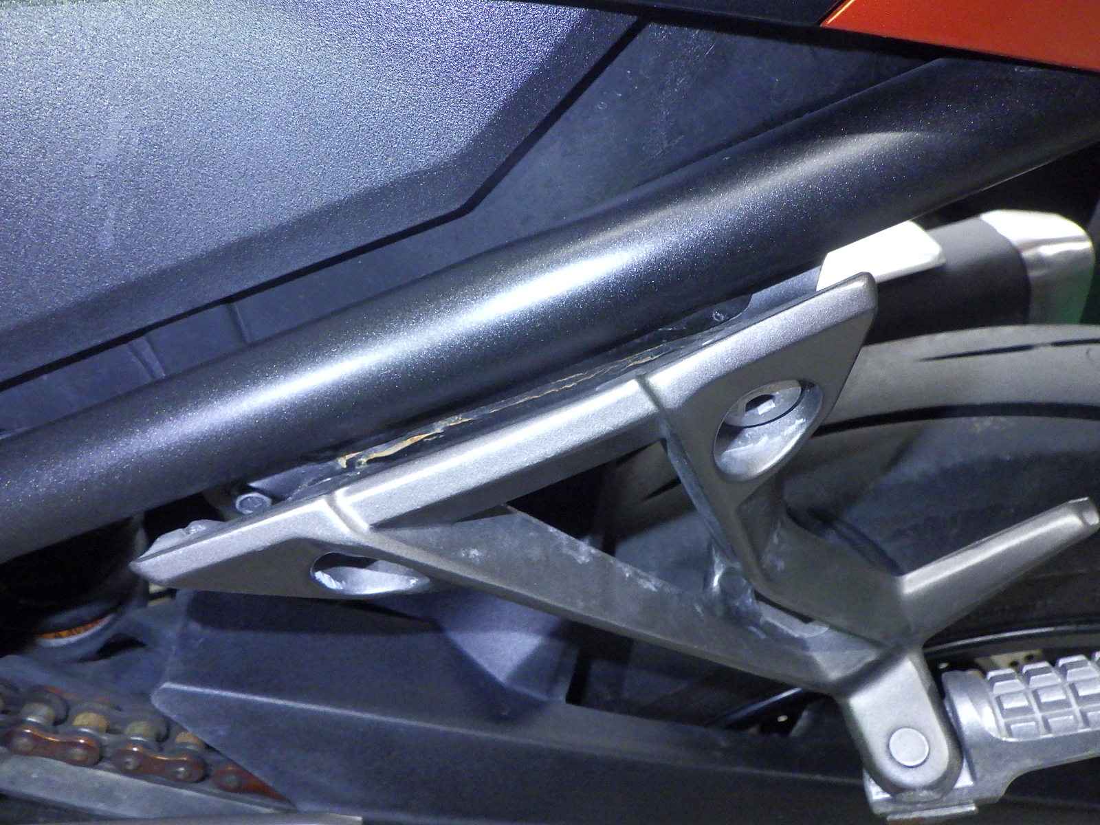 Подножка мотоцикла: Изгиб стойки, Потёртость