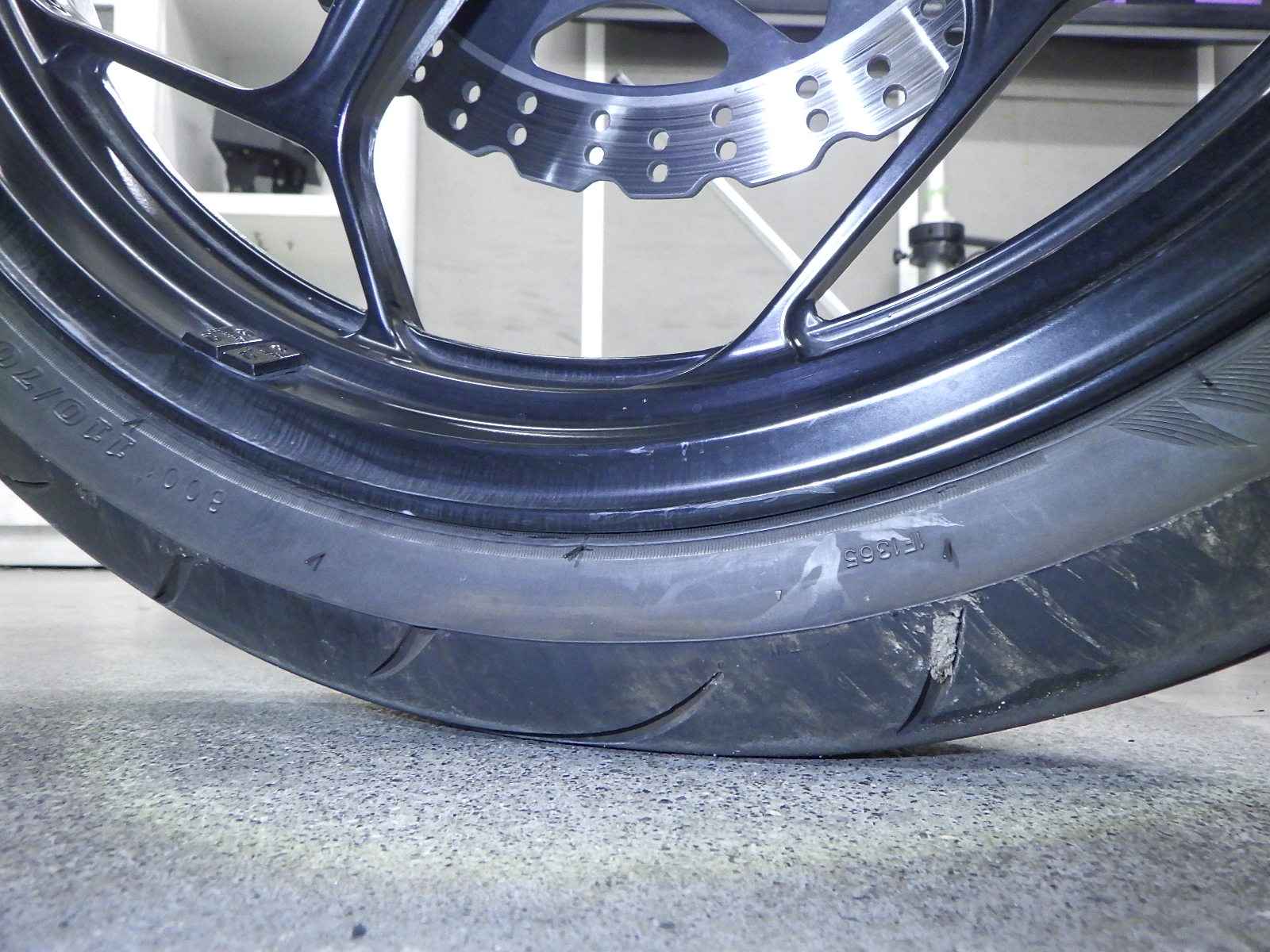 Передняя покрышка: Снижение давления в шине, Трещина, Требуется замена