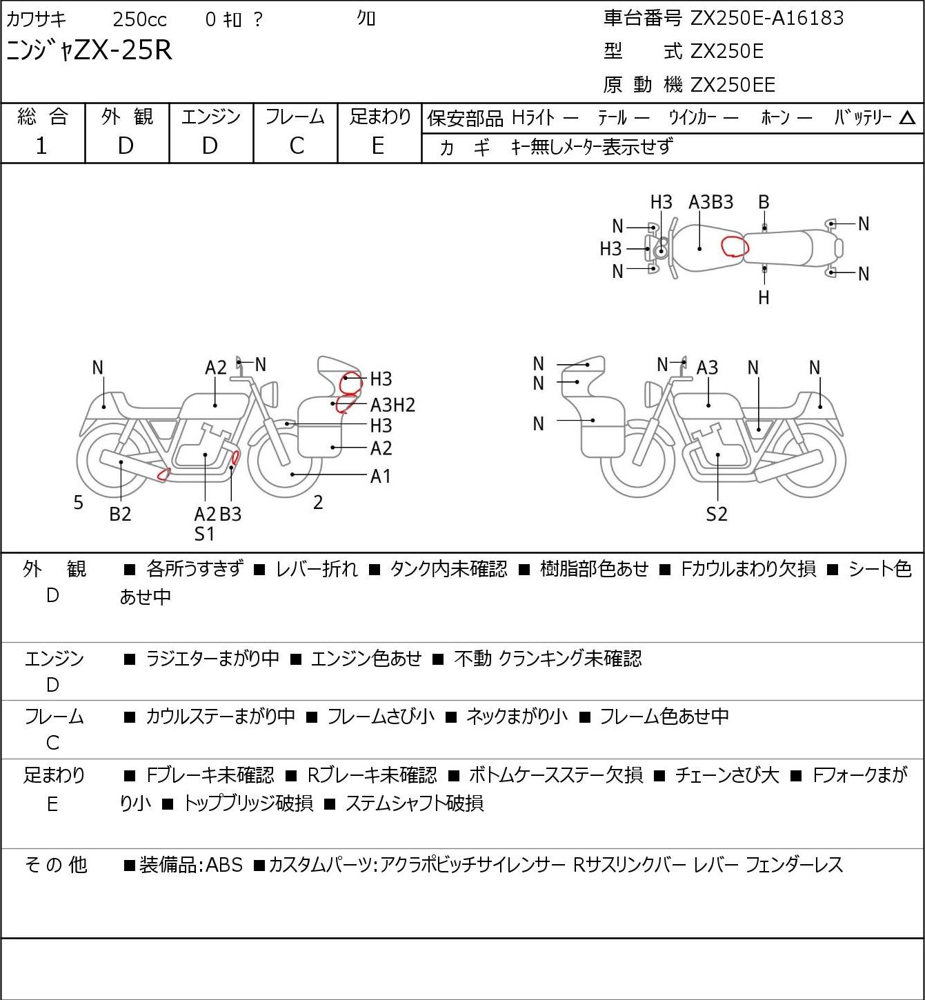 Номер рамы: ZX250E-A16183
