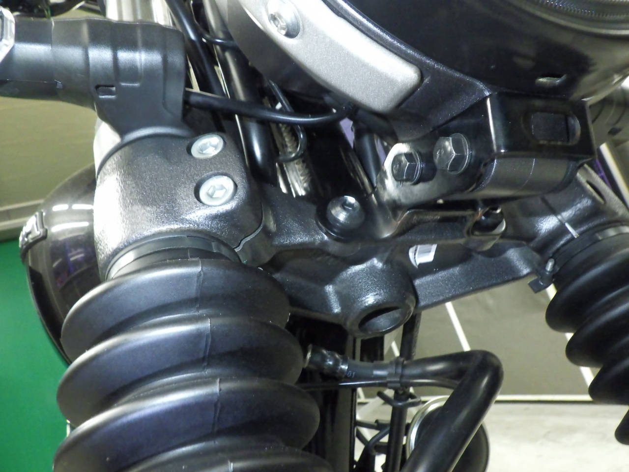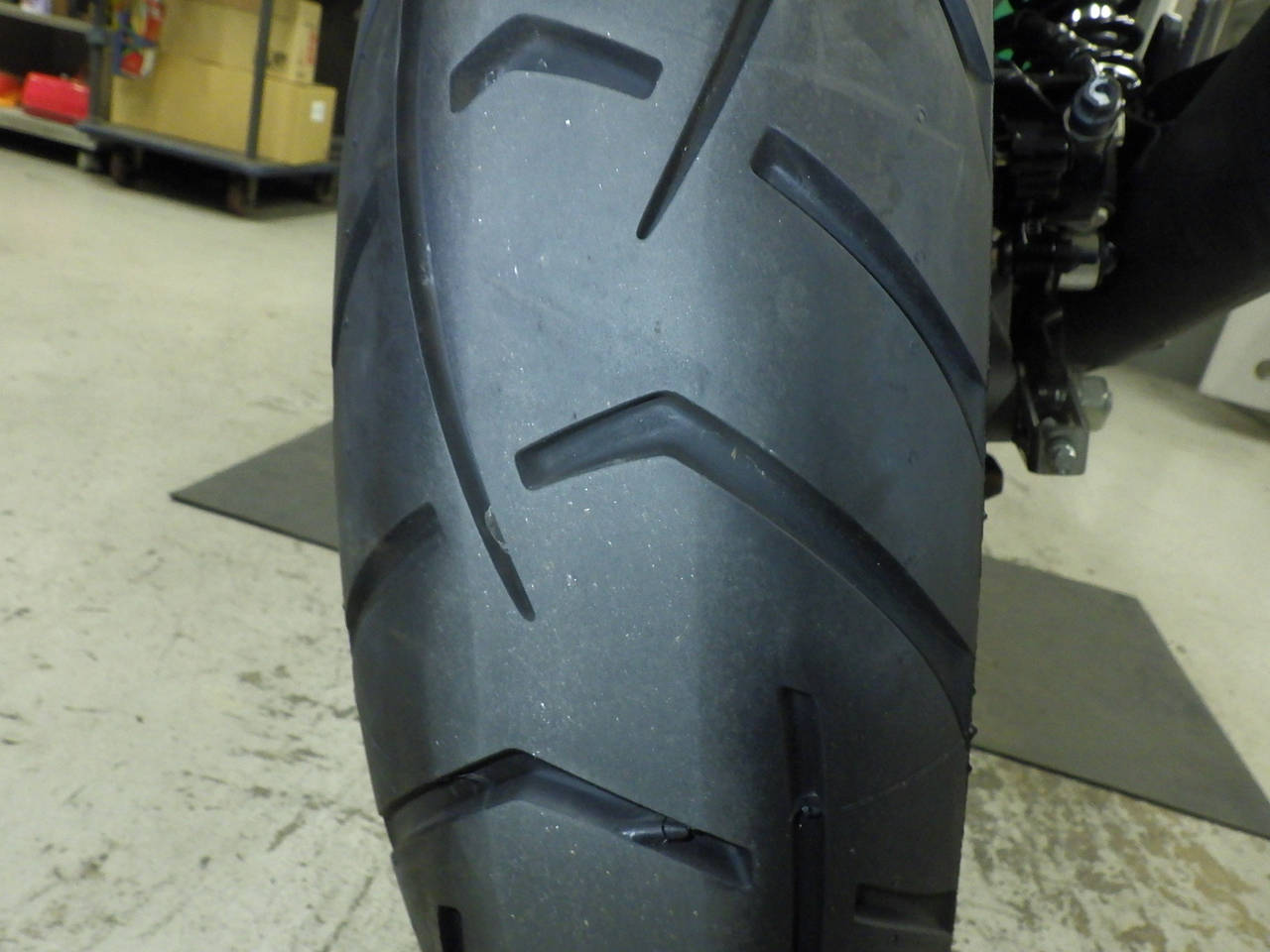Передняя покрышка: Трещина на шине, требуется замена.