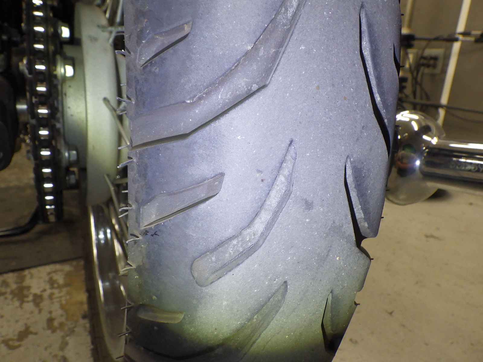 Задняя покрышка: Трещина на шине, Незначительно