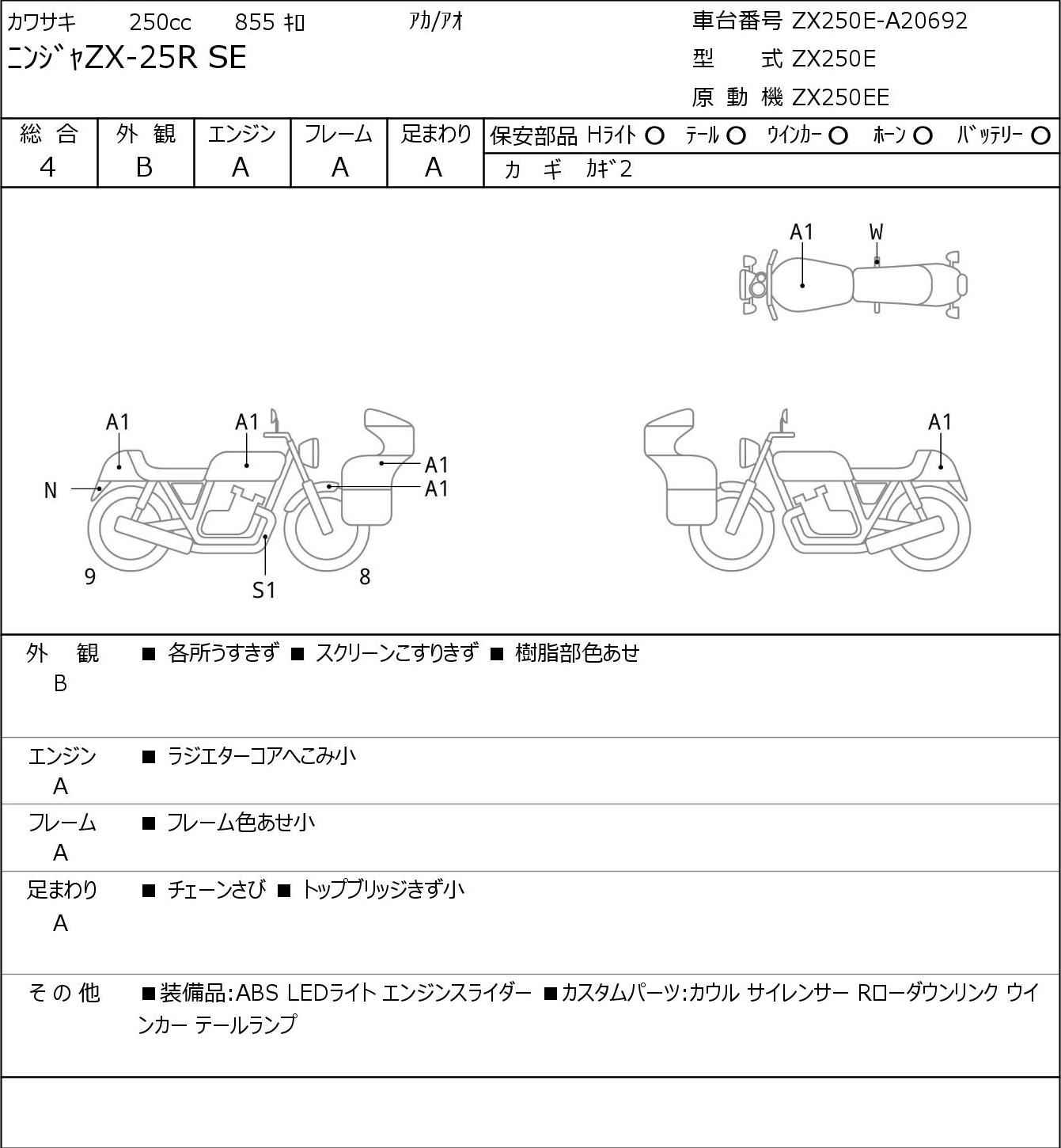 Номер рамы: ZX250E-A20692