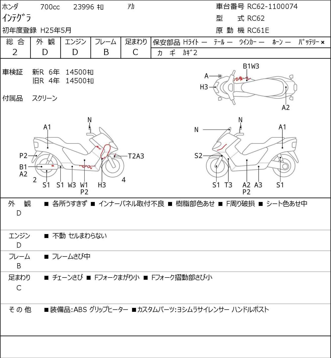 Номер рамы: RC62-1100074