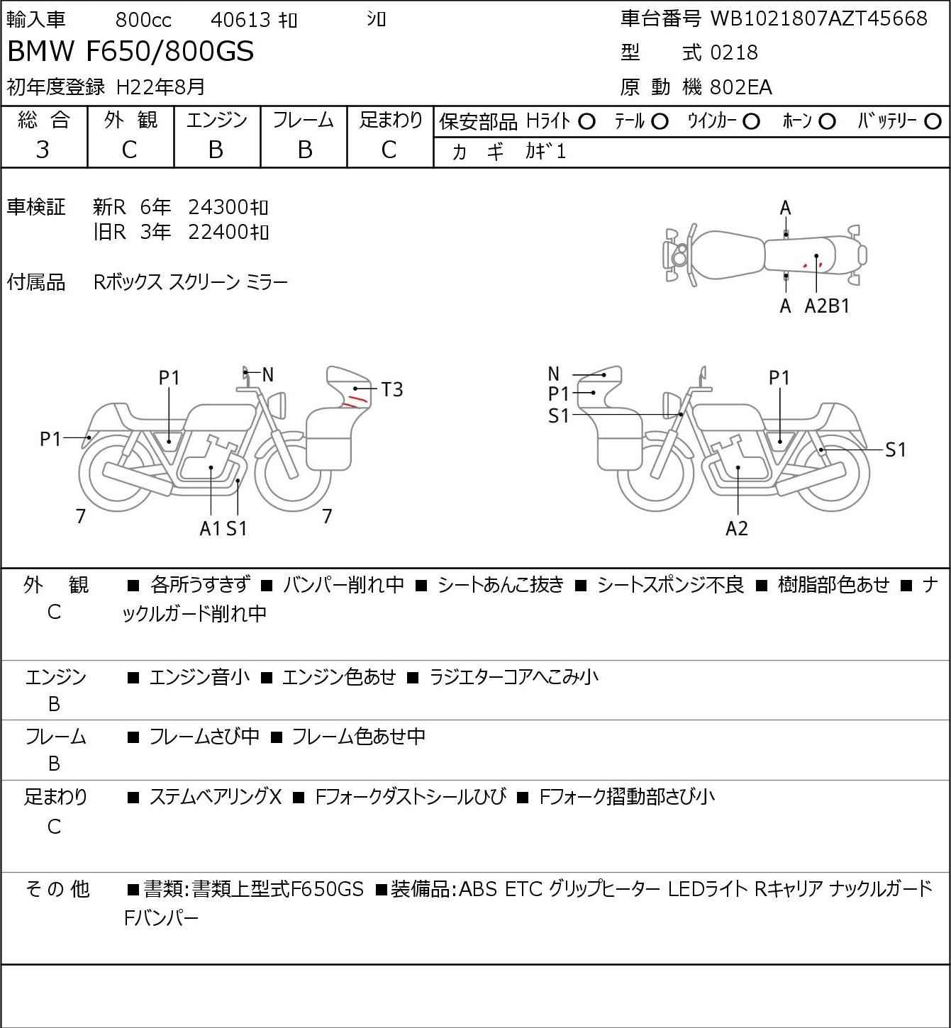 Номер рамы: WB1021807AZT45668