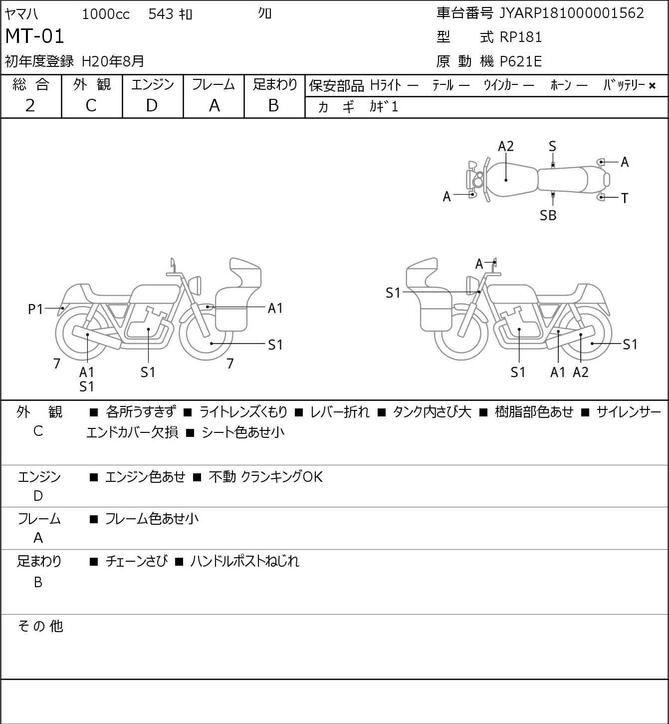 Номер рамы: JYARP181000001562