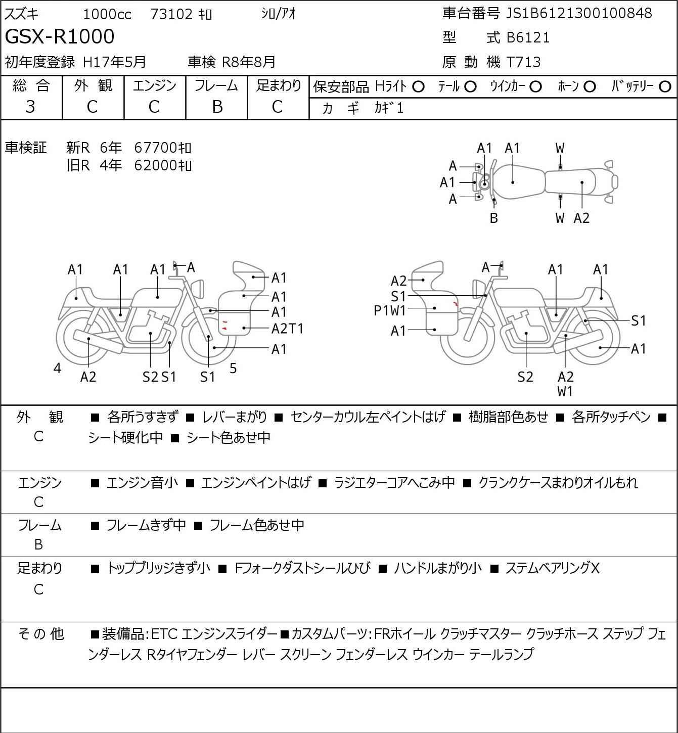 Номер рамы: JS1B6121300100848