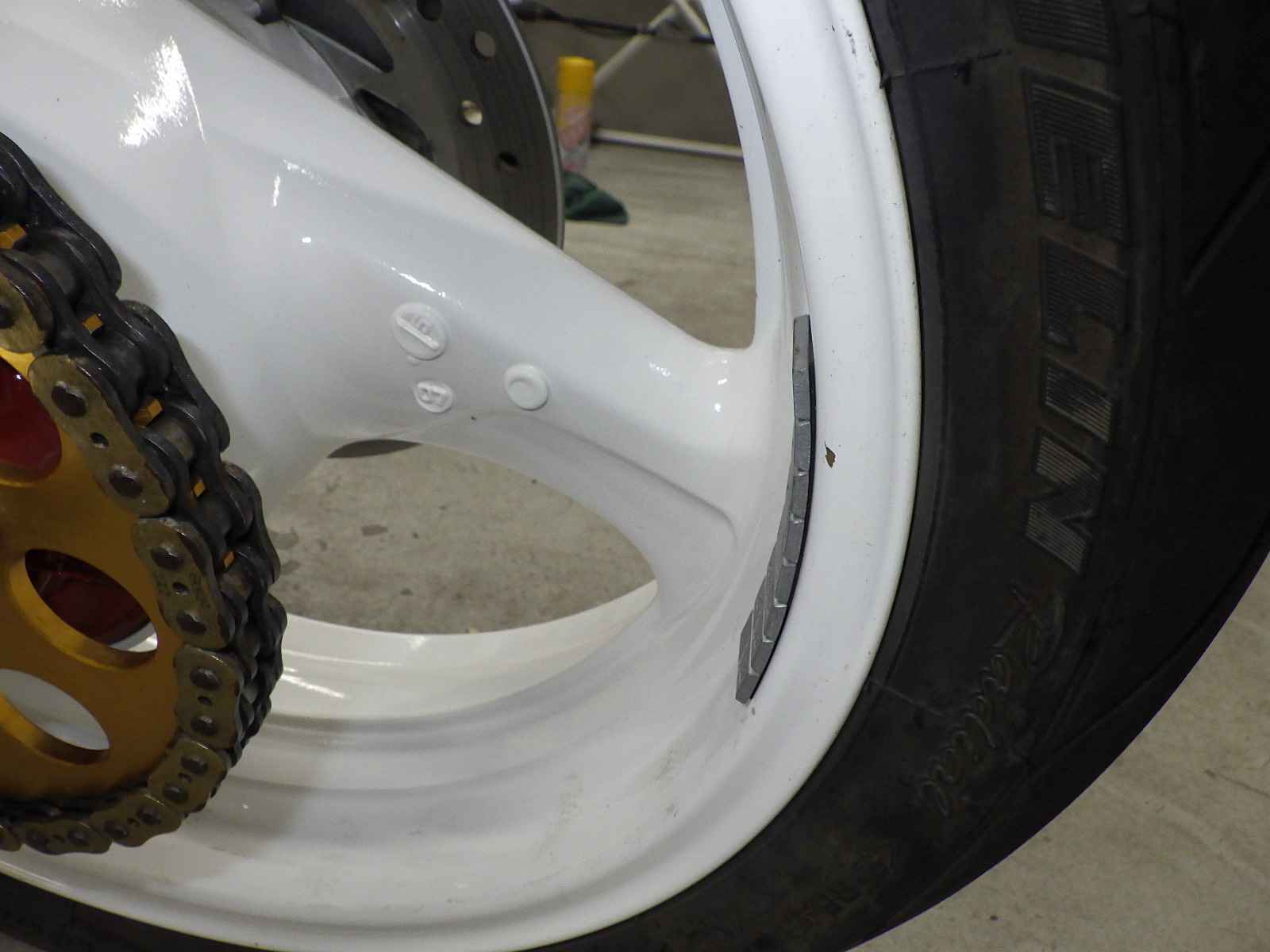 Заднее колесо: Краска на колесе облезла., Вся краска
