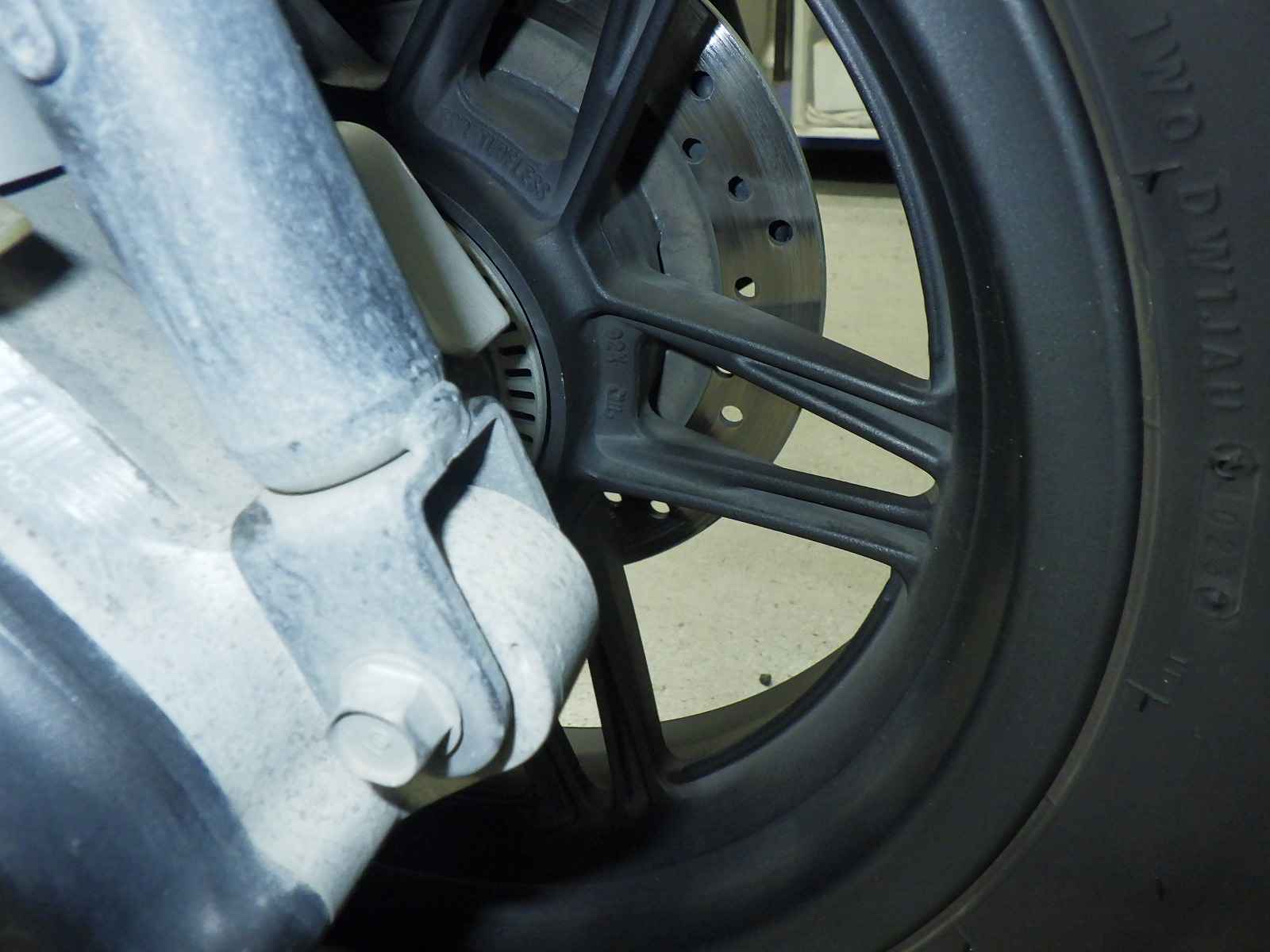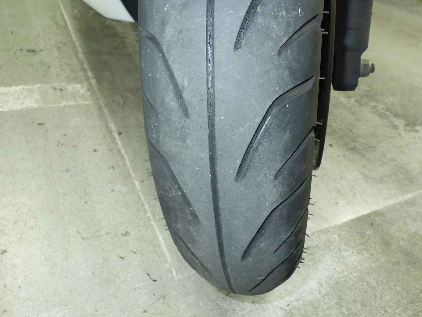 Передняя покрышка: Снижение давления в шине, Трещина требует замены.