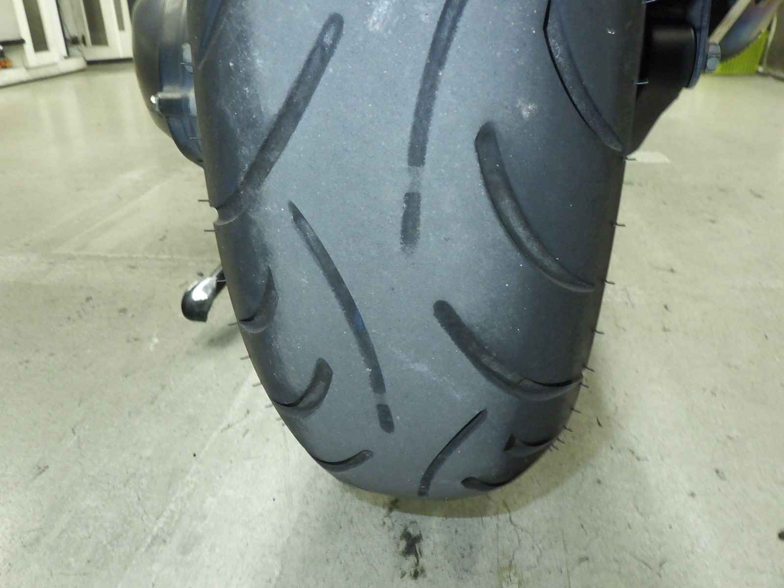 Задняя покрышка: Снижение давления в шине, Трещина требует замены.