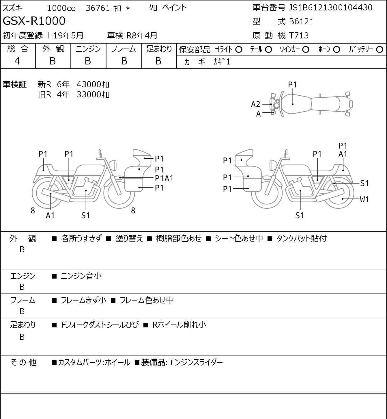Номер рамы: JS1B6121300104430