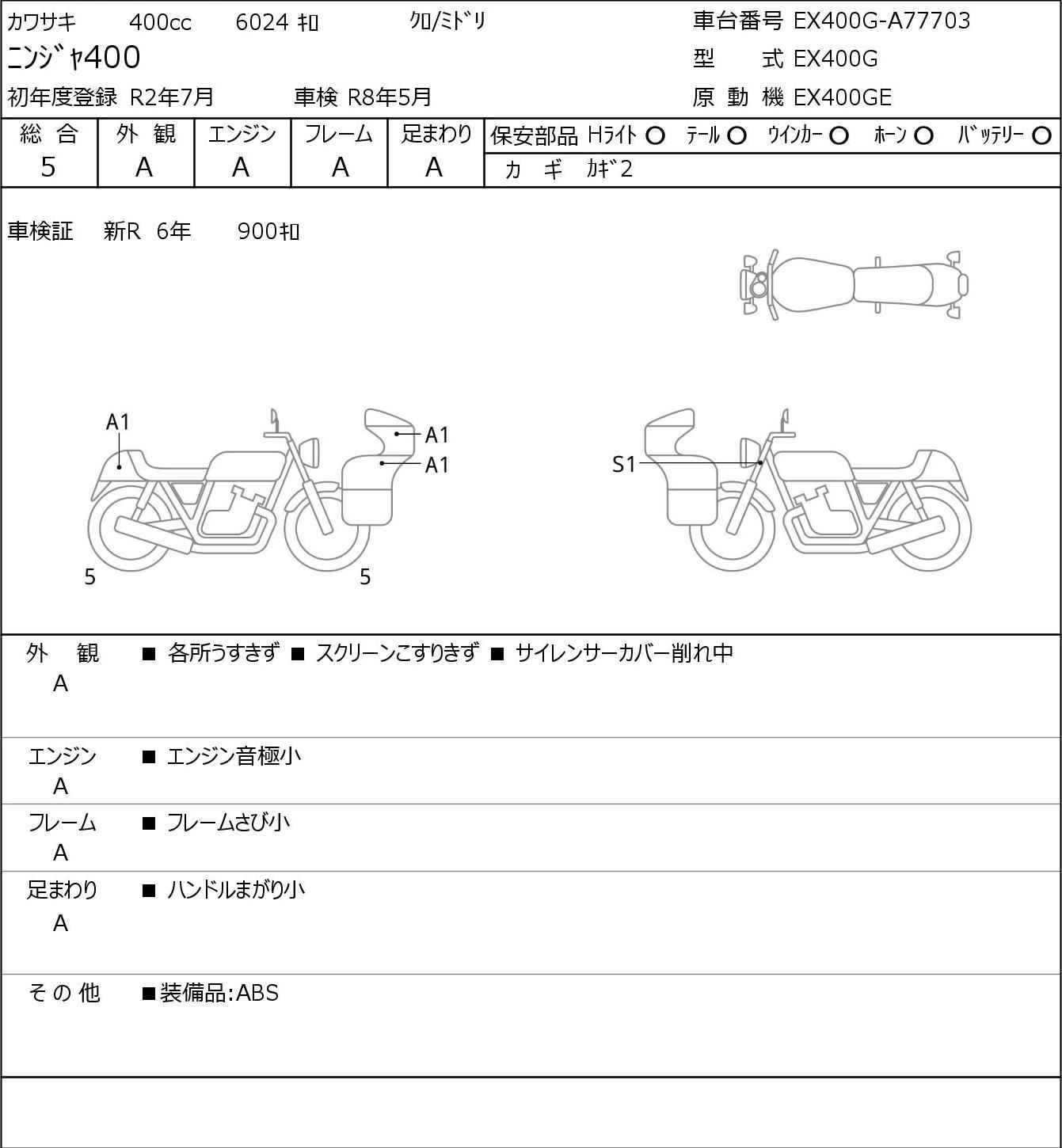 Номер рамы: EX400G-A77703