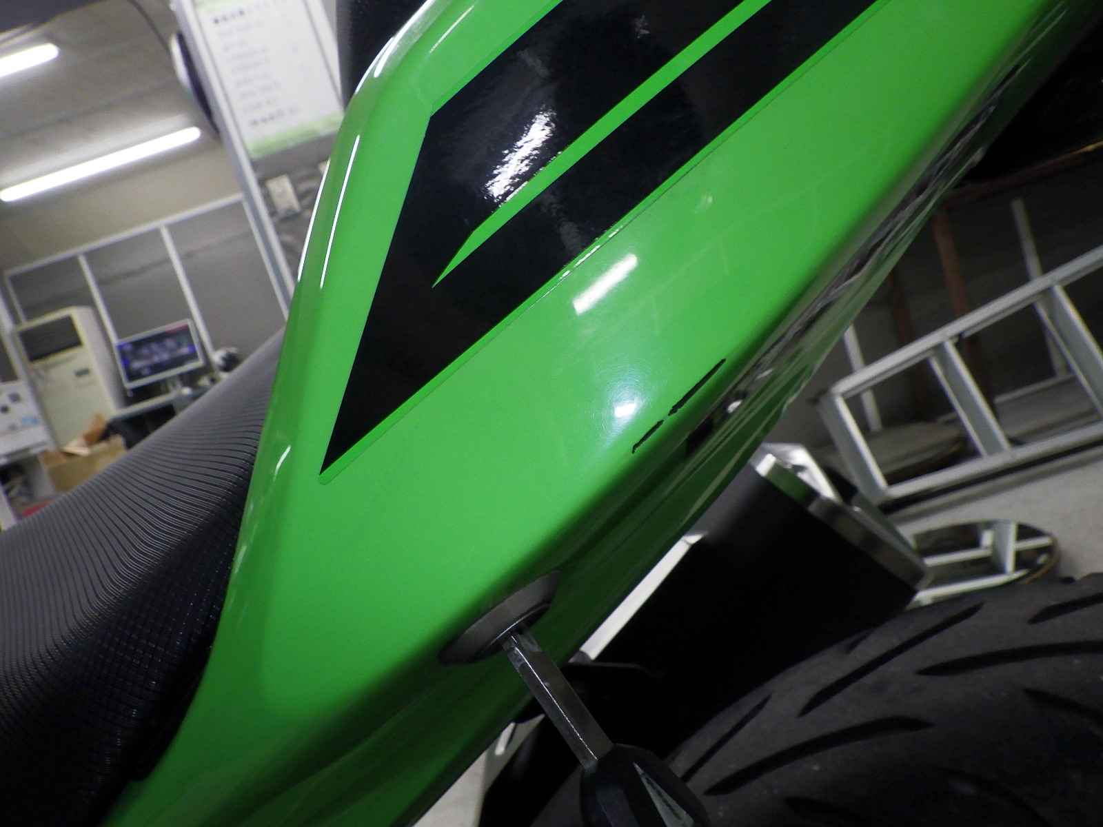Нижний пластик: Мотоцикл имеет отслоение краски., Незначительно
