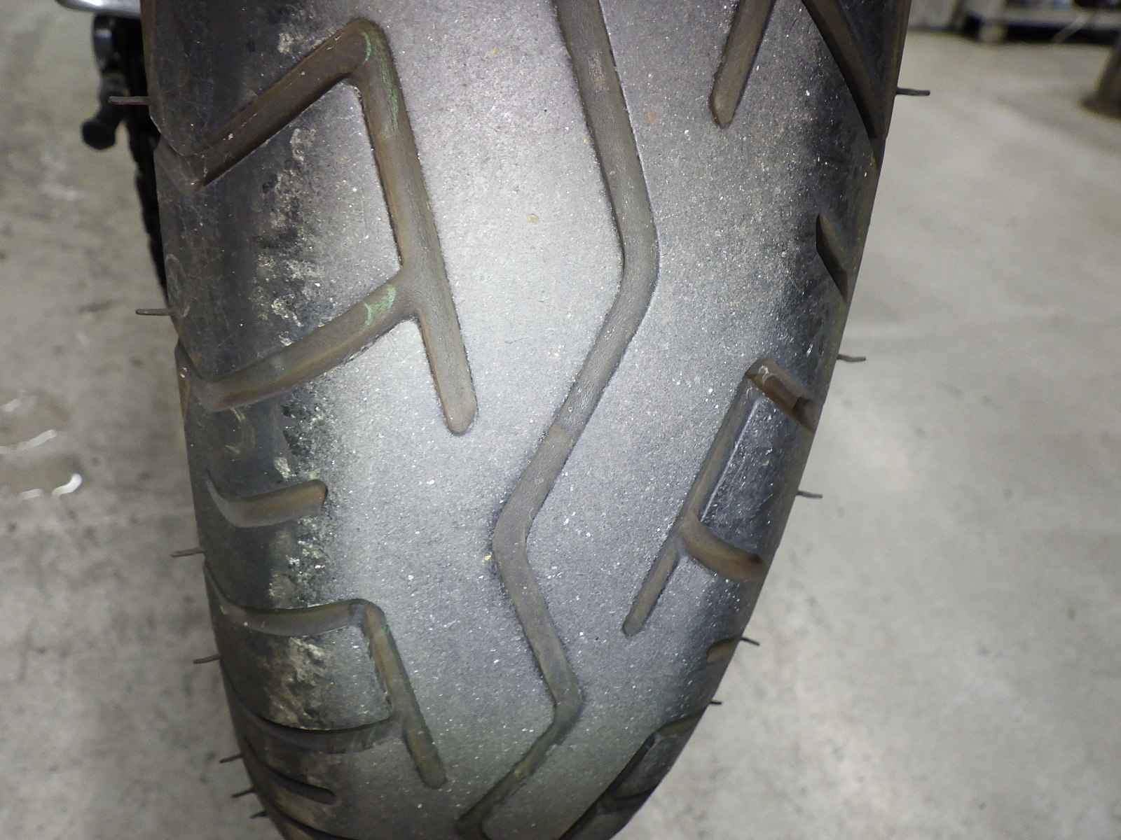Передняя покрышка: Трещина на шине, требуется замена.