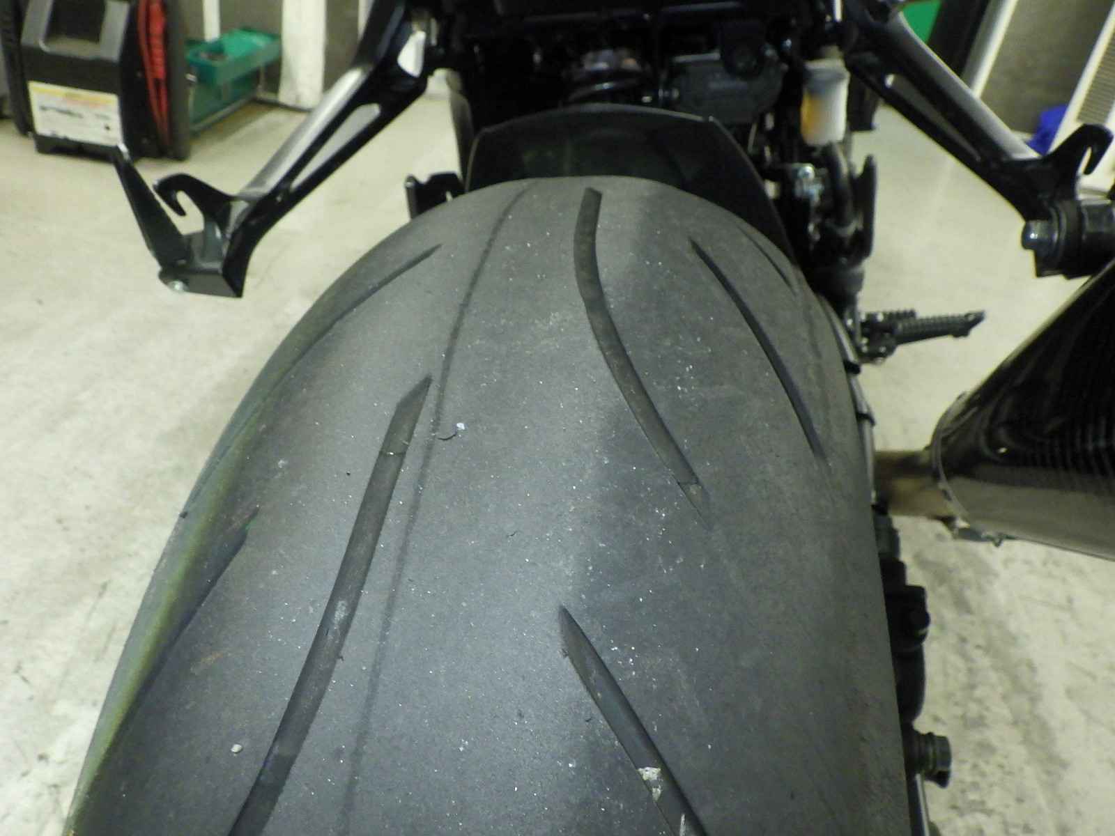 Задняя покрышка: Требуется замена изношенного шины.