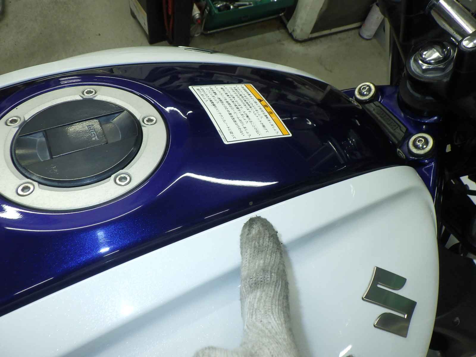 Бензобак: Повреждение бака, покраска с баллончика, Незначительно, Недочет покрытия, Установленный патч