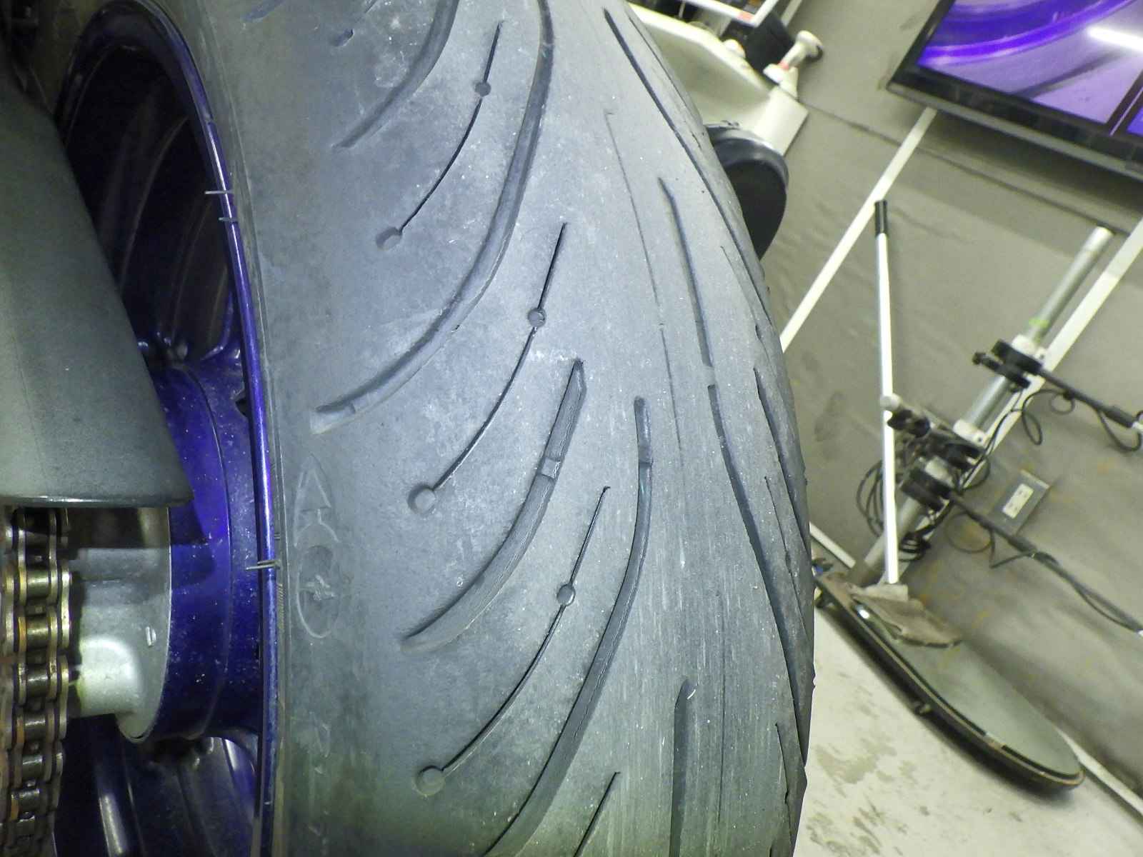 Задняя покрышка: Требуется замена изношенного шины.