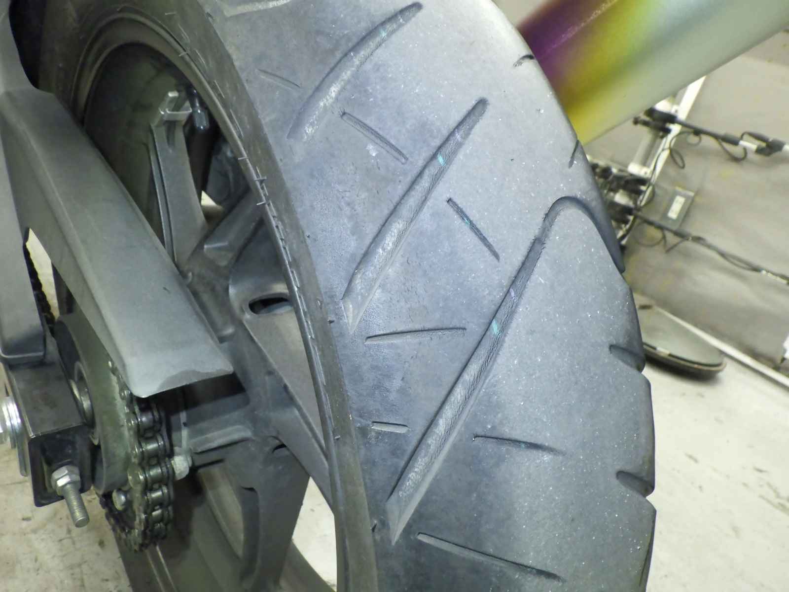Задняя покрышка: Снижение давления в шине, Трещина требует замены.