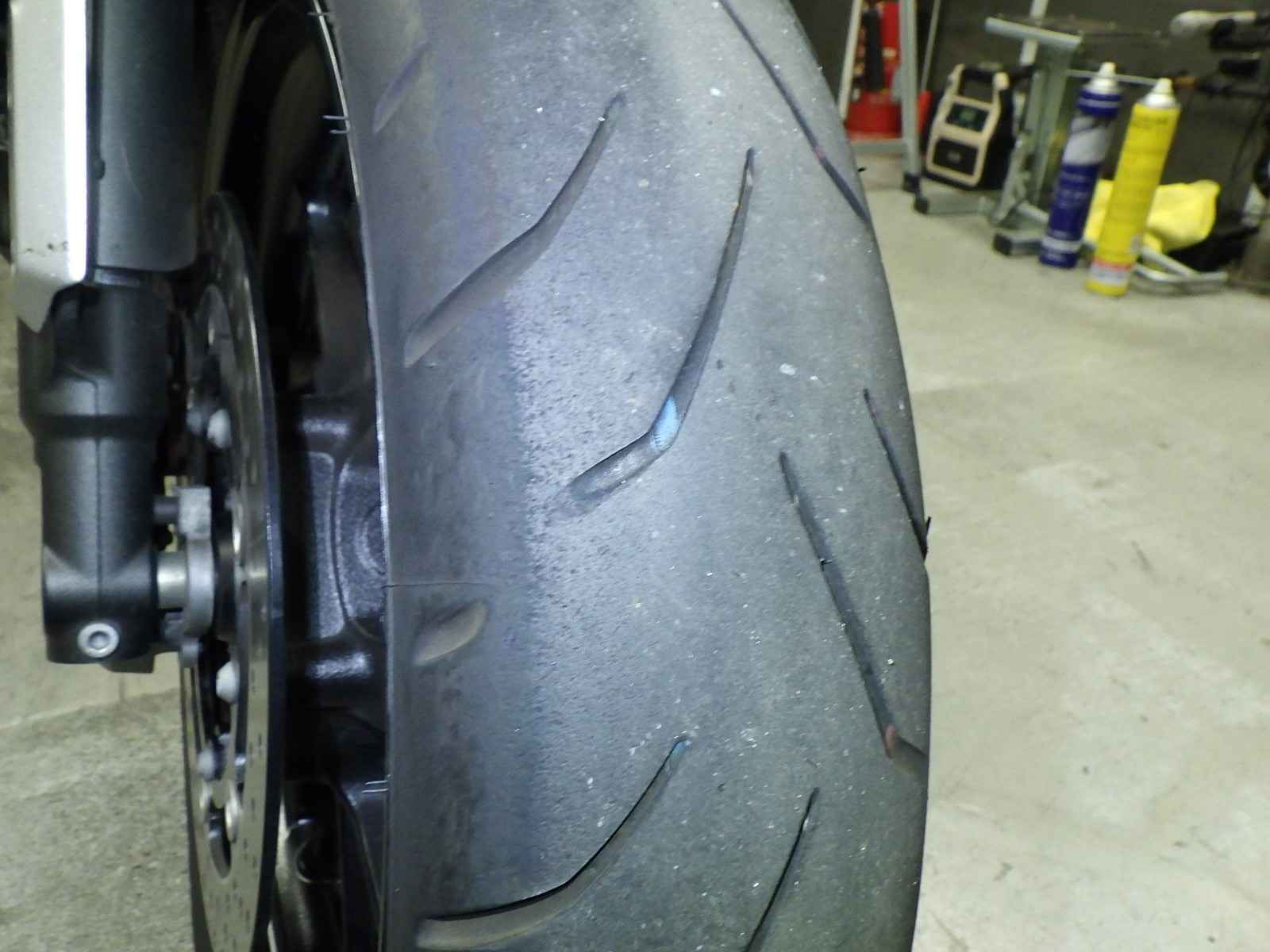 Передняя покрышка: Требуется замена изношенного шины.