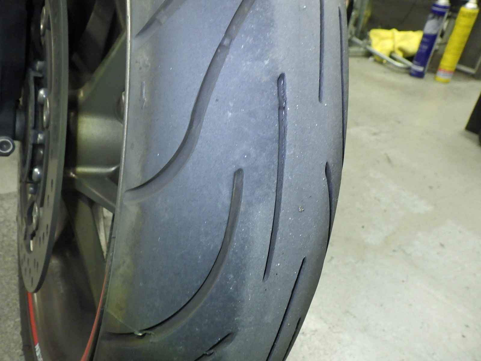 Передняя покрышка: Требуется замена изношенного шины.