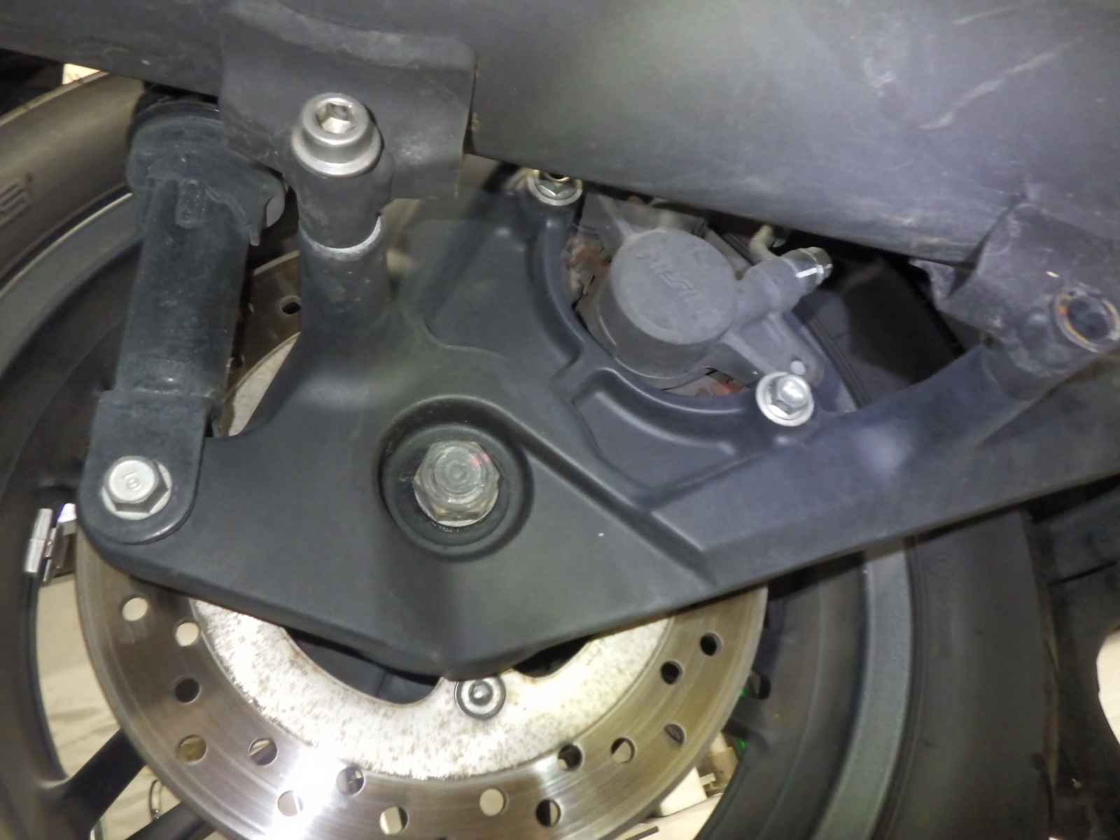 Заднее колесо: Краска колеса облупилась из-за ржавчины.