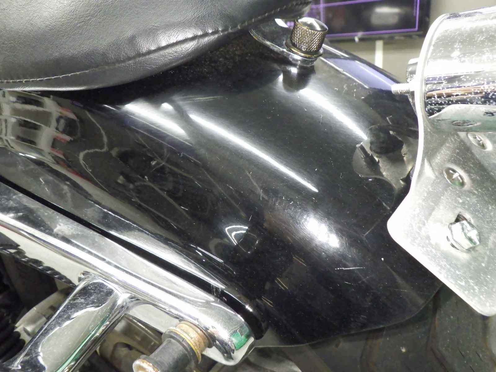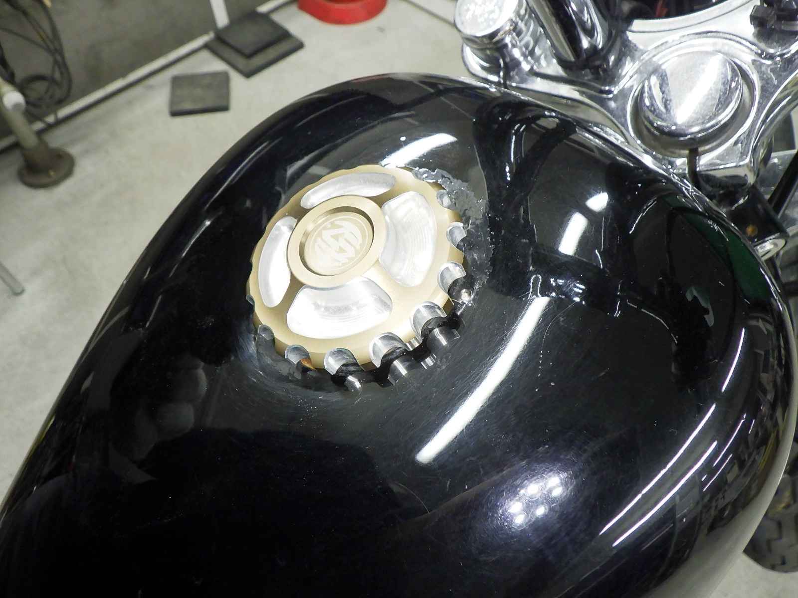 Бензобак: Недочет бака Уровень 3, облезлая краска Неоригинальный продукт, Внутренняя окисление, Вся краска нанесена неравномерно.