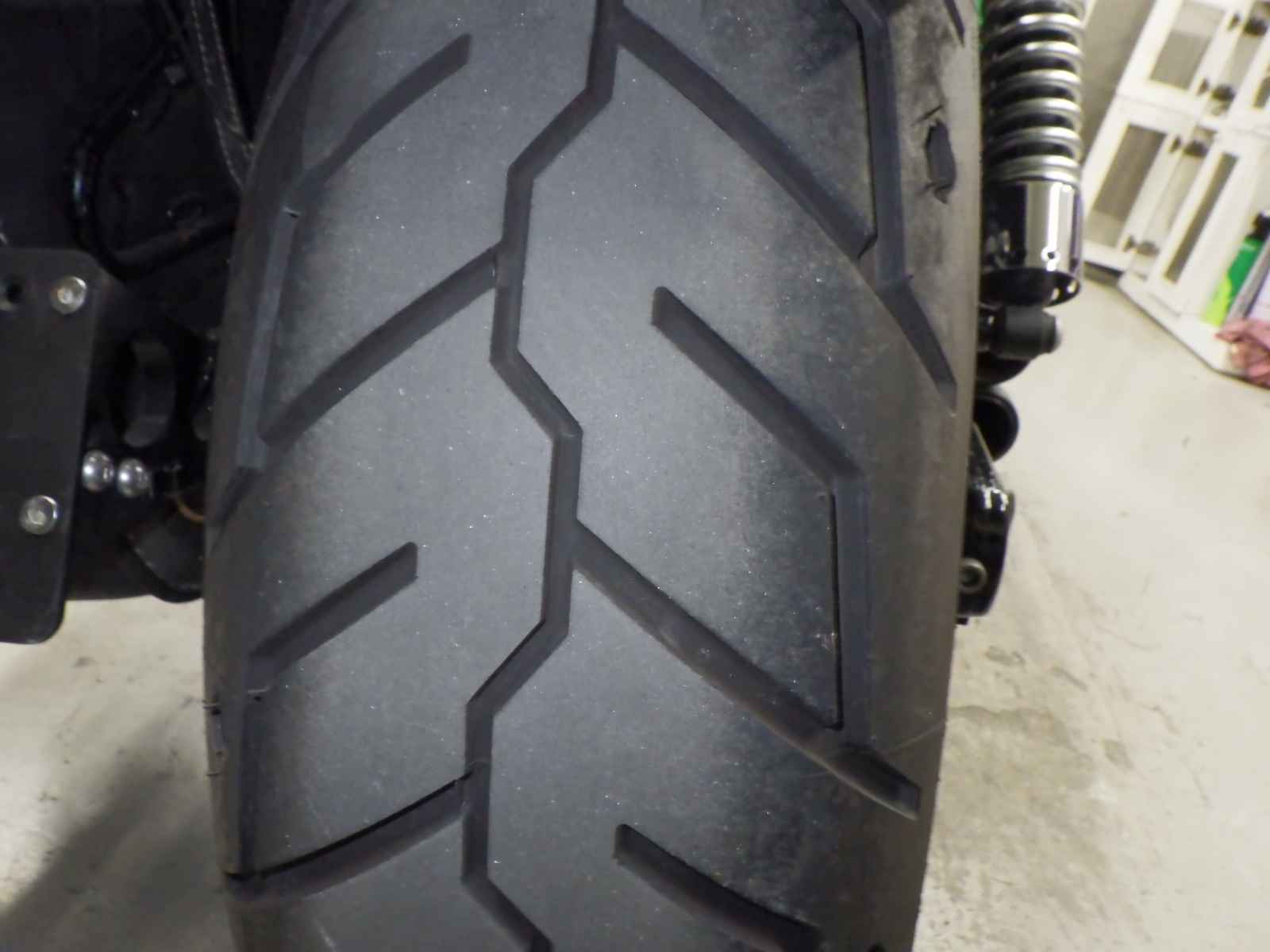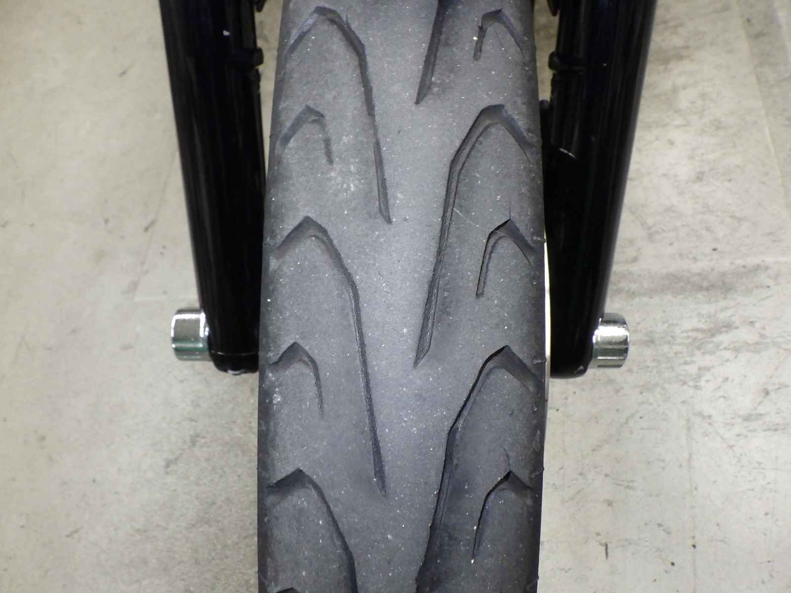 Передняя покрышка: Снижение давления в шине, Трещина требует замены.
