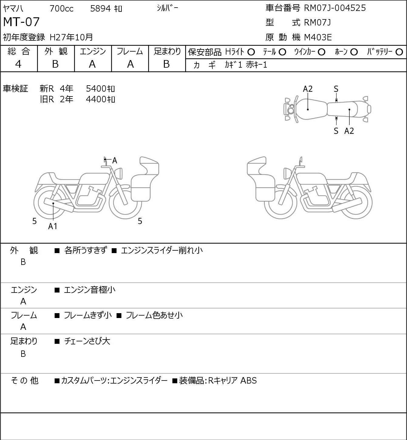 Номер рамы: RM07J-004525